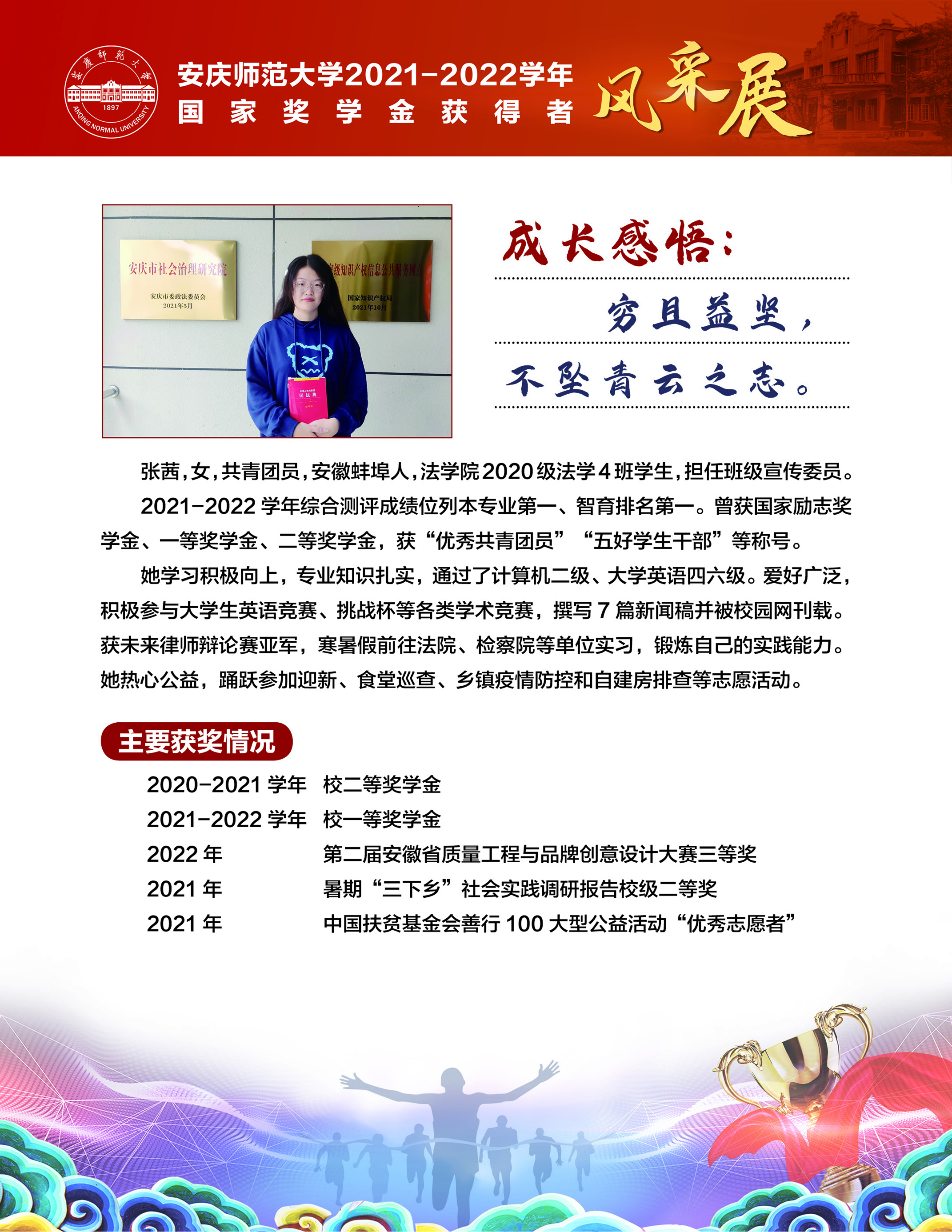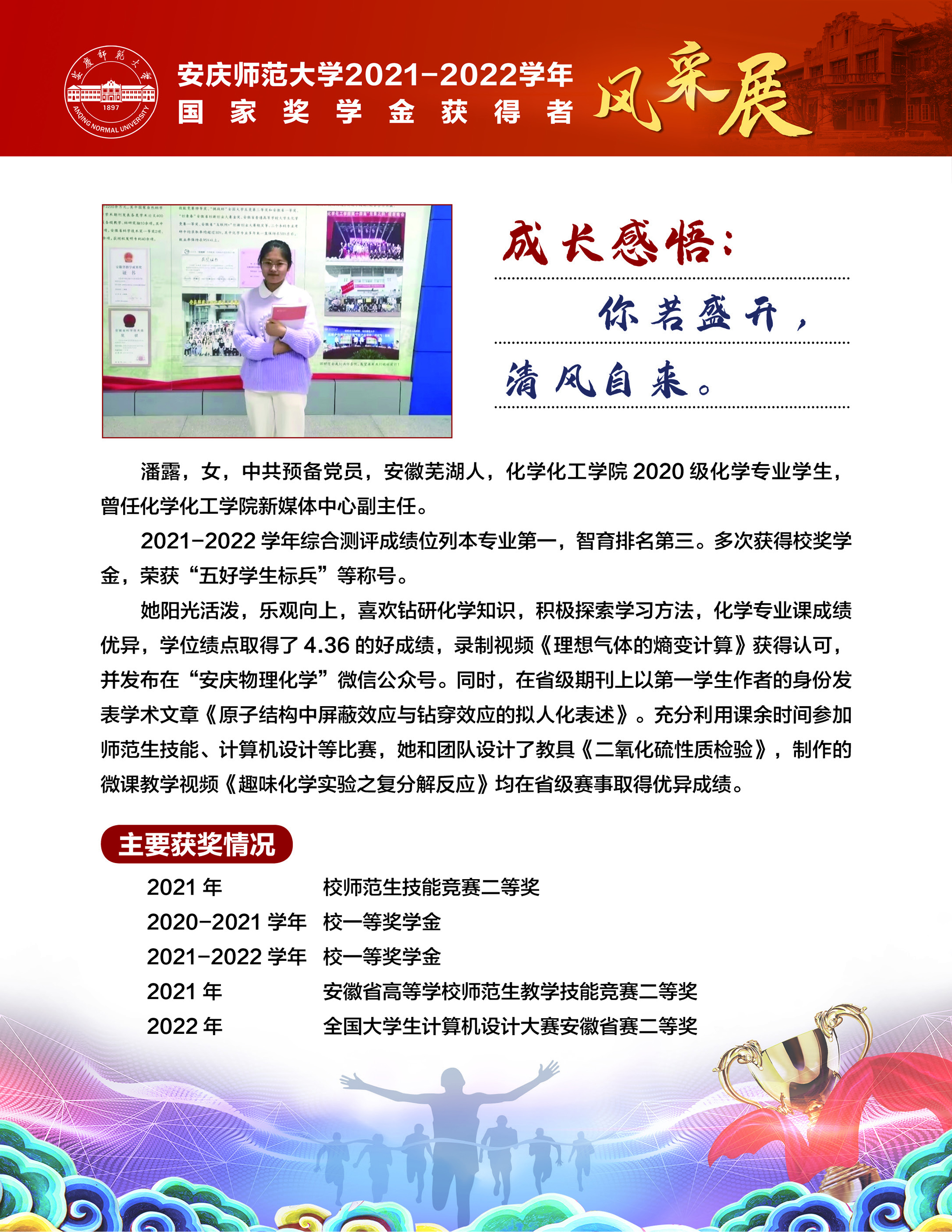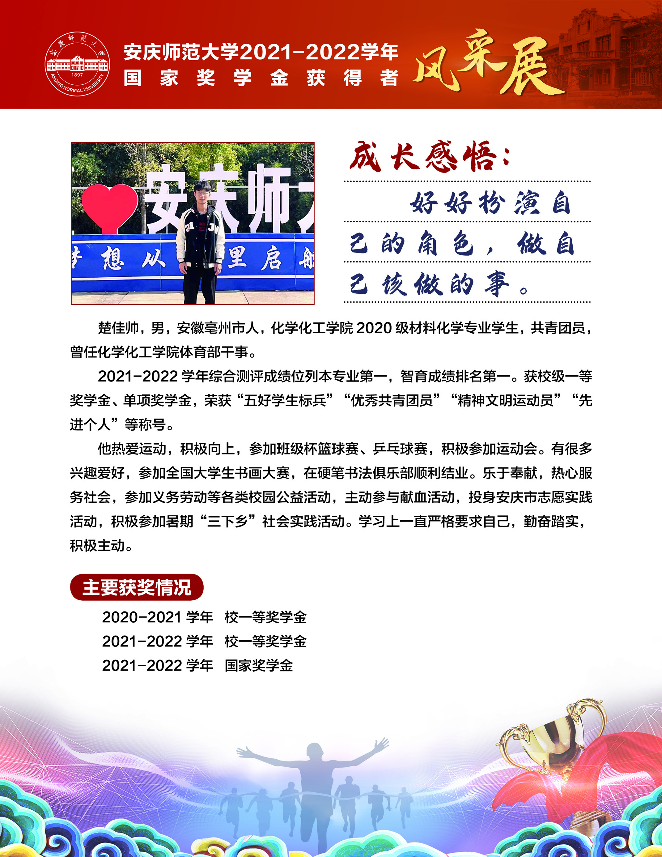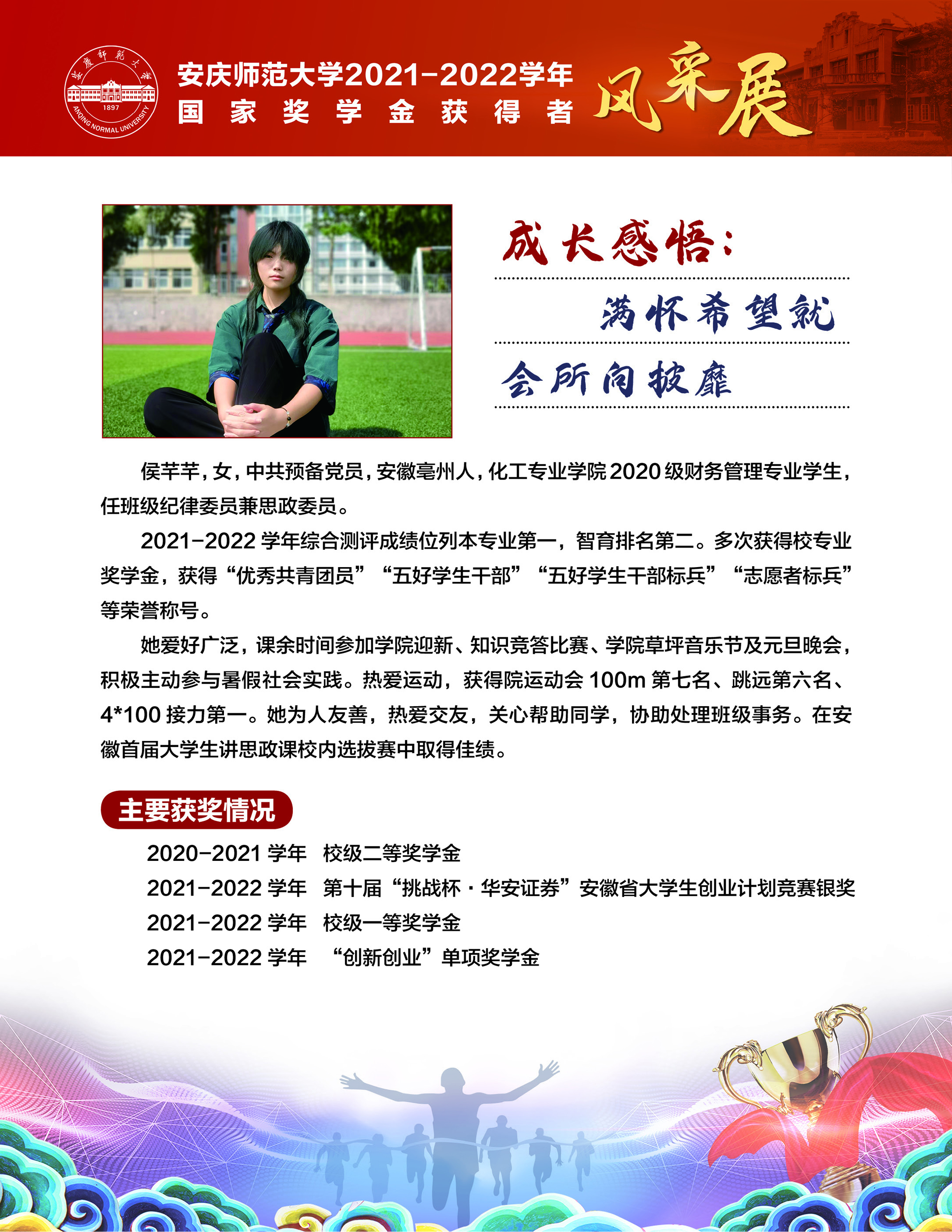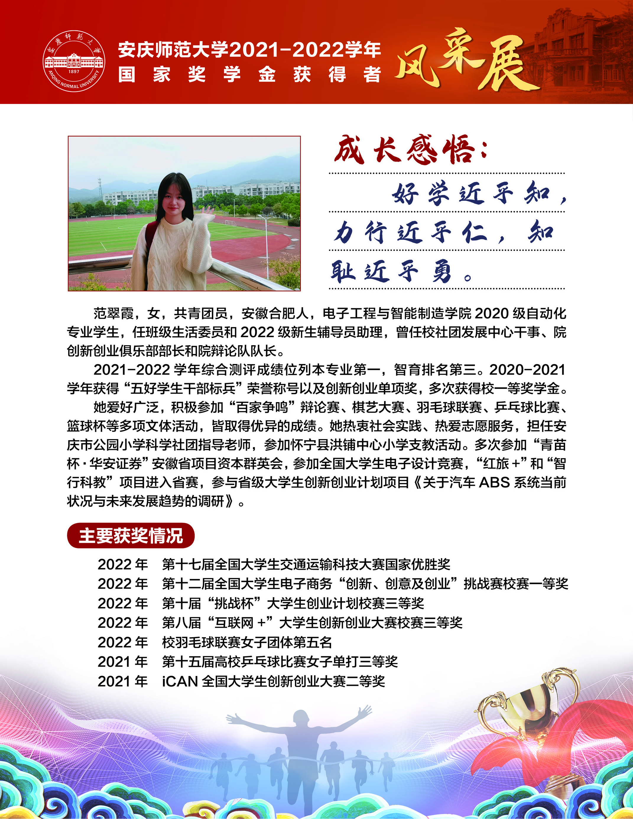 编者按:中国共产党beat365英国官方网站第二次党员代表大会即将召开,这是学校在推进高水平大学建设新征程中召开的一次重要会议。学校第二次党代会肩负着统一思想、凝心聚力、统筹规划、引领发展的重要使命,既要全面总结过去五年来学校党的建设和事业发展取得的好成绩、形成的好经验,也要认真研判新形势、应对新挑战,为学校新阶段实现高质量发展锚定方向、擘画蓝图。为迎接学校第二次党代会的召开,学校特推出【砥砺奋进的五年∙学生风采】系列报道,接续2018年以来【国奖风采录】专栏报道,集中展现beat365青年学子昂扬向上、奋发有为的青春风貌,激励与启迪广大青年立志做有理想、敢担当、能吃苦、肯奋斗的新时代好青年,让青春在全面建设社会主义现代化国家的火热实践中绽放绚丽之花。