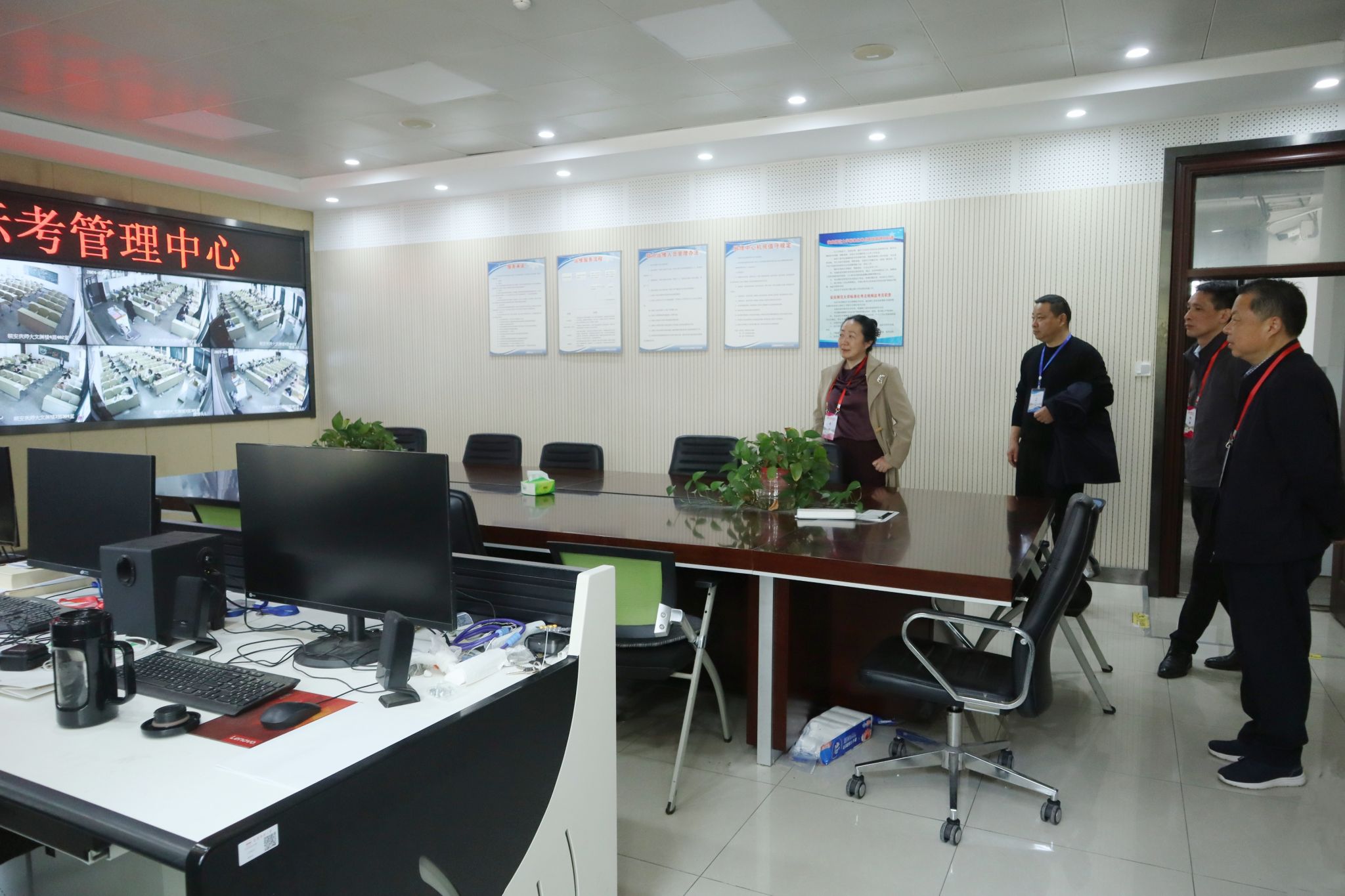 巡查组参观了学校标准化考场管理中心,通过数字化影像监控了解各考场实际情况。巡查组强调,考试是教学活动的重要一环,是检验教学效果、保证教学质量的重要手段,考风考纪直接影响着考试的公平、公正,各考场和相关职能部门要进一步加强考试组织管理,持续抓好考风考纪;要做好复试全流程各项保障工作,营造良好的考试氛围。