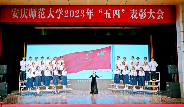 大会现场组织了精彩的文艺演出。体育学院带来的《体育舞蹈》,展现了当代青年朝气蓬勃、热情洋溢的精神面貌;中国舞俱乐部、流行音乐俱乐部学员表演的歌伴舞《百年》,再现了中国共产党带领人民寻求真理的百年征程;校主持队的朗诵《向祖国报告》,表达了新时代青年用青春和汗水写就奋斗诗篇的决心;教师教育学院、舞蹈爱好者协会联合演出的《奔跑的青春》,展现了新时代青年的奋进之姿;音乐学院师生和受表彰青年学生代表共同带来的合唱《有我》,发出了“请党放心、强国有我”的铮铮誓言,现场挥舞起的党旗、国旗、团旗、校旗和各学院院旗,将表彰大会推向高潮。