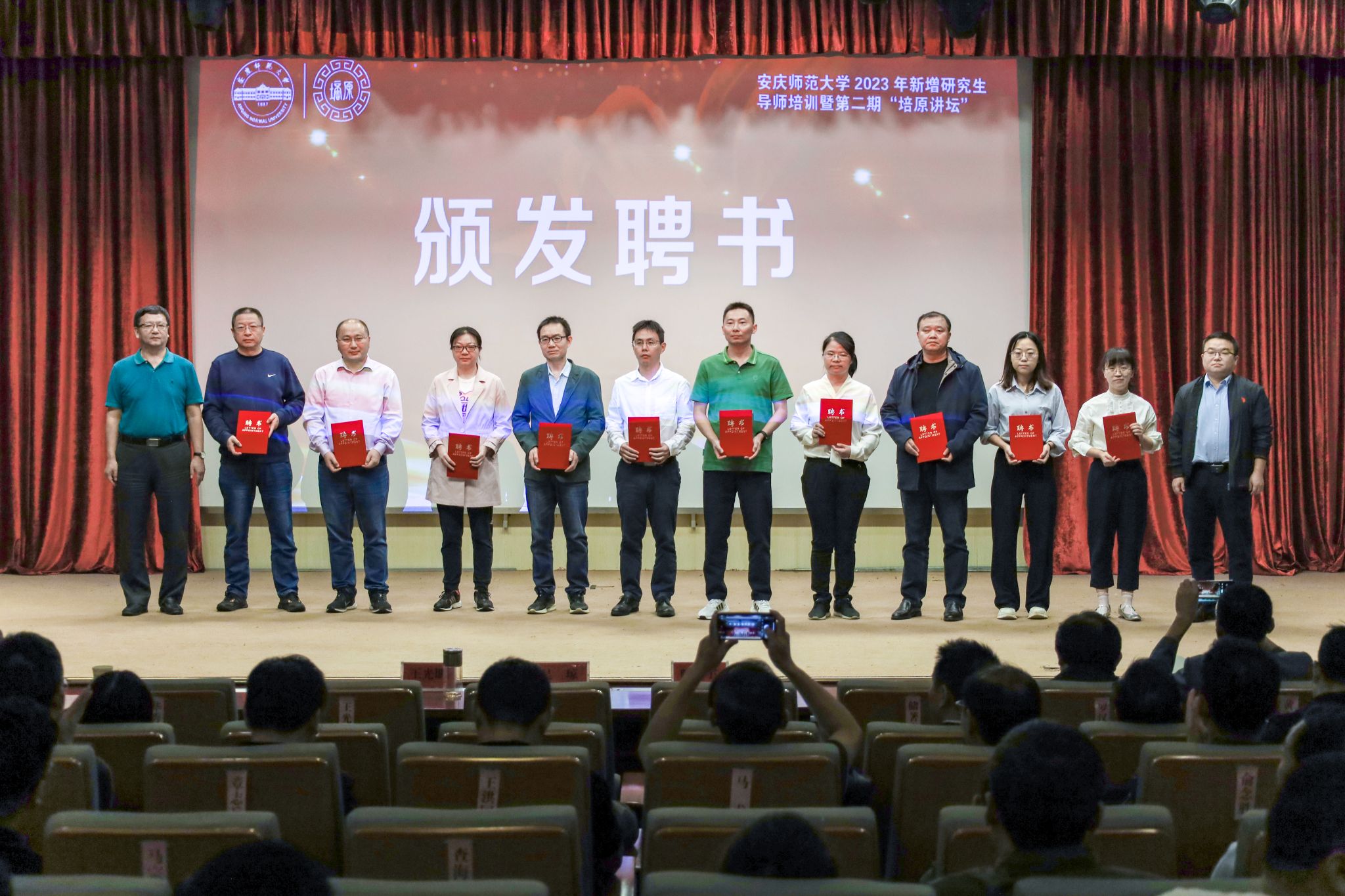 培训会上,王光明、陆振宇分别以《基于实践创新能力的硕士学位论文选题》《优化学科建设布局,推动新一轮学位点申报》为题做专题辅导讲座并为新增研究生导师颁发聘书。