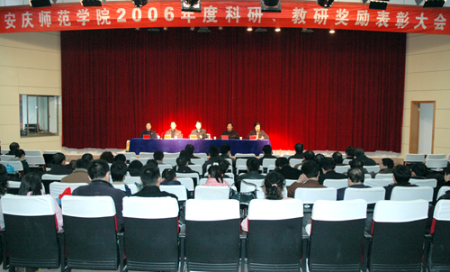 副院长时新中同志宣读了《安庆师范学院2006年度科研教学成果奖奖励决定》。与会校领导分别给“教学科研工作先进集体”教务处、科技处、办公室、团委及各类成果奖先进个人颁奖。