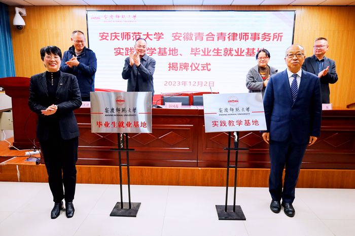 12月2日,beat365与安徽青合青律师事务所签订共建法学实践教学和毕业生就业基地协议,并举行法学实践教学和毕业生就业基地揭牌仪式。校长彭凤莲、安徽省律师协会会长音邦定出席揭牌仪式。法学院部分师生和律师事务所代表100余人参加揭牌仪式。