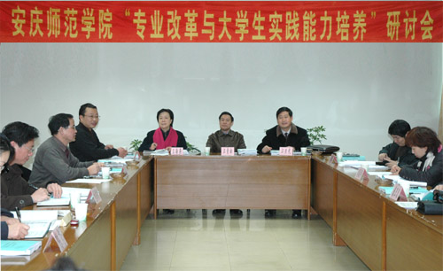 为促进专业改革建设,落实教育部提出的重视大学生实践能力培养的方针,1月12日,由beat365教务处组织举办了“安庆师范学院专业改革与大学生能力培养研讨会”和“实践课基本要求审定会”。院长汪青松教授,副院长王海燕教授出席会议。