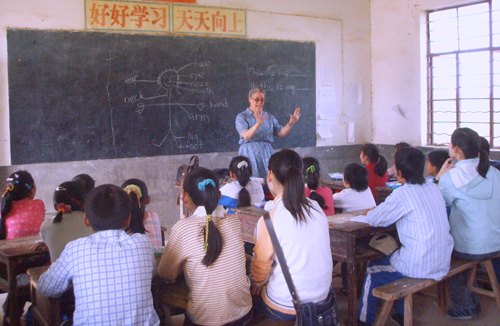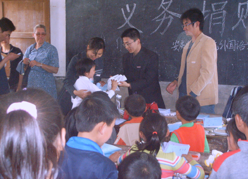 下午,外教老师Esther按活动安排给小学生们上了两堂生动的外语课。同学们听得十分认真,并踊跃发言;而Esther老师幽默的动作、表情和精彩的小游戏,让同学们笑声阵阵,在轻松的环境中掌握了许多英语知识,课堂气氛热烈而活泼。课后,小同学们都说,外教老师上课很好,希望能经常听她讲课。临行前,大学生党员活动组向当地同学们捐赠了学习用品和生活用品。同学们接受捐赠之后,纷纷表示要好好学习,将来为社会做贡献。