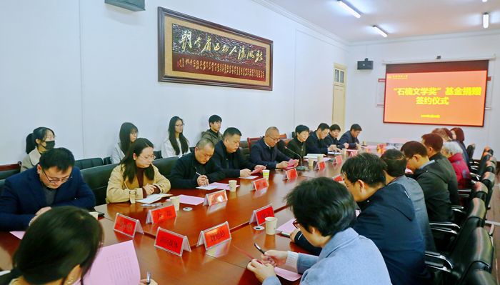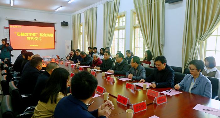 3月28日,“石楠文学奖”基金捐赠签约仪式在beat365菱湖校区举行。著名作家石楠、校长彭凤莲出席仪式,党委宣传部、科研处、教务处、财务处、校友总会办公室、学生处、团委等相关部门负责人,人文学院党政领导班子及师生代表参加仪式。捐赠仪式由校党委常委、副校长肖新主持。