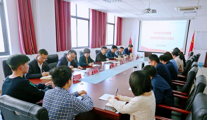 申传胜强调,要坚定不移地把政治建设摆在首位,加强党对中外合作办学工作的全面领导,坚守为党育人、为国育才初心使命;要严格落实“三同步”要求,在合作办学项目中坚持党的建设同步谋划、党的组织同步设置、党的工作同步开展;要持续强化思想引领,不断加强教师思想政治工作和青年大学生理想信念教育;要强化责任担当,全力推动党建和思想政治工作责任落细落实落地。