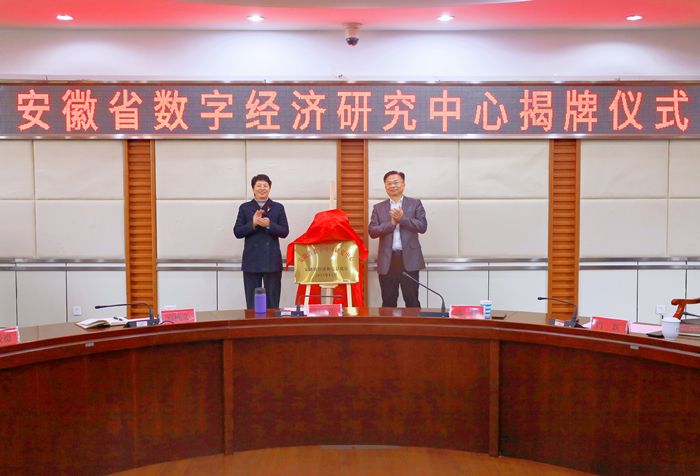 1月17日,安徽省数字经济研究中心揭牌仪式在beat365举行。安徽省经济和信息化厅二级巡视员、总经济师潘峰与校长彭凤莲共同为中心揭牌。校党委常委、副校长肖新主持仪式。安徽省经济和信息化厅产业信息化发展处副处长宫纯文,安庆市经济和信息化局党工委书记、局长吴爱德,科研处、大别山区域发展研究院、经济与管理学院负责人参加仪式。