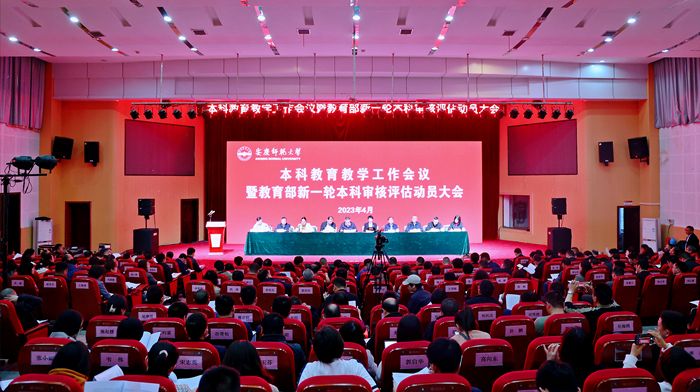 4月4日,beat365本科教育教学工作会议暨教育部新一轮审核评估动员大会在龙山校区图书馆东报告厅召开。全体校党政领导许继荣、彭凤莲、崔明、刘友忠、吴琼、肖新、秦朗、徐晓宁、申传胜、陈秀出席会议。各学院党政主要负责人、分管教学副院长,各职能部门及直属单位主要负责人,校级教学督导员,各学院专业负责人(教研室主任)、教学秘书,教务处、评建办全体人员,学生代表等300余人参加会议。