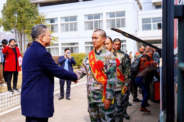 3月12日,学校举行2024年春季大学生入伍欢送仪式暨“强军林”植树活动。校领导李福华、崔明、刘友忠、秦朗、徐晓宁、申传胜,大观区人民武装部部长刘晨光出席仪式,校人民武装部、基建与后勤管理处、安全管理处、教务处、团委、各学院负责人,辅导员代表、学生家长代表、在校学生代表参加仪式。