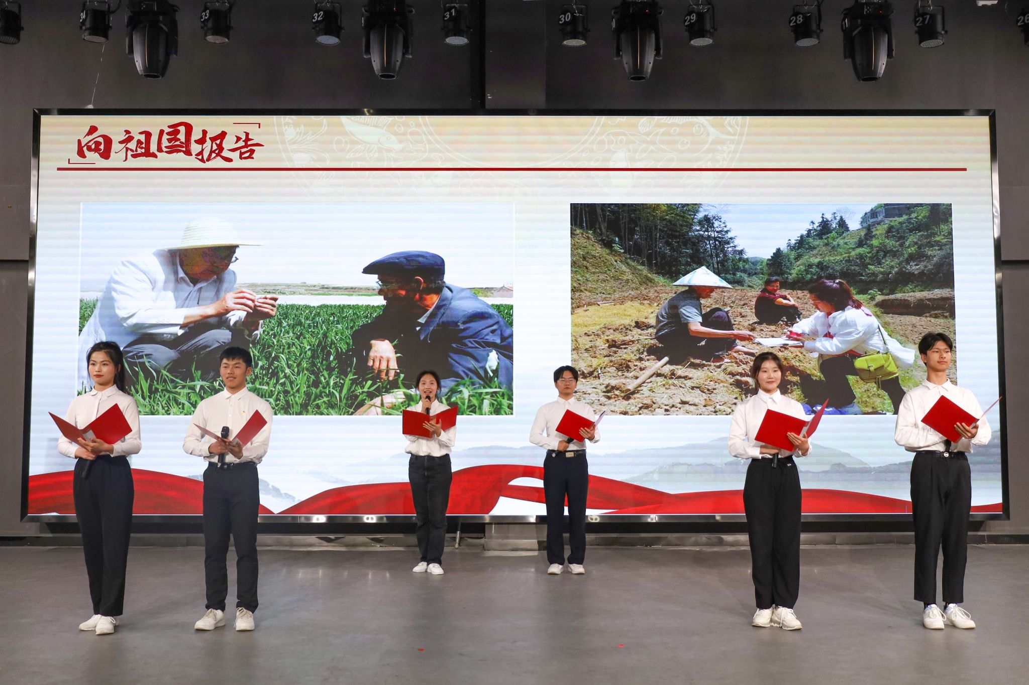 “实践充分证明,无论过去、现在还是未来,中国青年始终是实现中华民族伟大复兴的先锋力量。”守卫边疆,不畏艰苦环境的戍边战士;驻扎乡村,带领乡亲们脱贫致富的驻村第一书记;疫情期间奔波在大街小巷,保障居民生活需求的凡人英雄快递小哥;平均年龄31岁的北斗科研攻关团队;与黄沙作伴的三代垦荒人……不同时代、不同岗位的青年群体,在校主持队的深情朗诵中仿佛走到师生眼前,他们用实干奋进向祖国报告。“在我们身边,也有这样的好青年。”施敏通过视频、图片,讲述了入围第27届中国青年五四奖章、beat3652022届校友张晨的“追光”故事;讲述了全省第八批学雷锋示范点大学生社区主任助理团队,23年来接力志愿服务的成长之路;讲述了活跃在迎新、义务献血等各类志愿服务中师生们默默奉献的暖心助人之举。可亲、可近、可信、可学的青年们,成为全场听众心中“夜空中最亮的星”。
