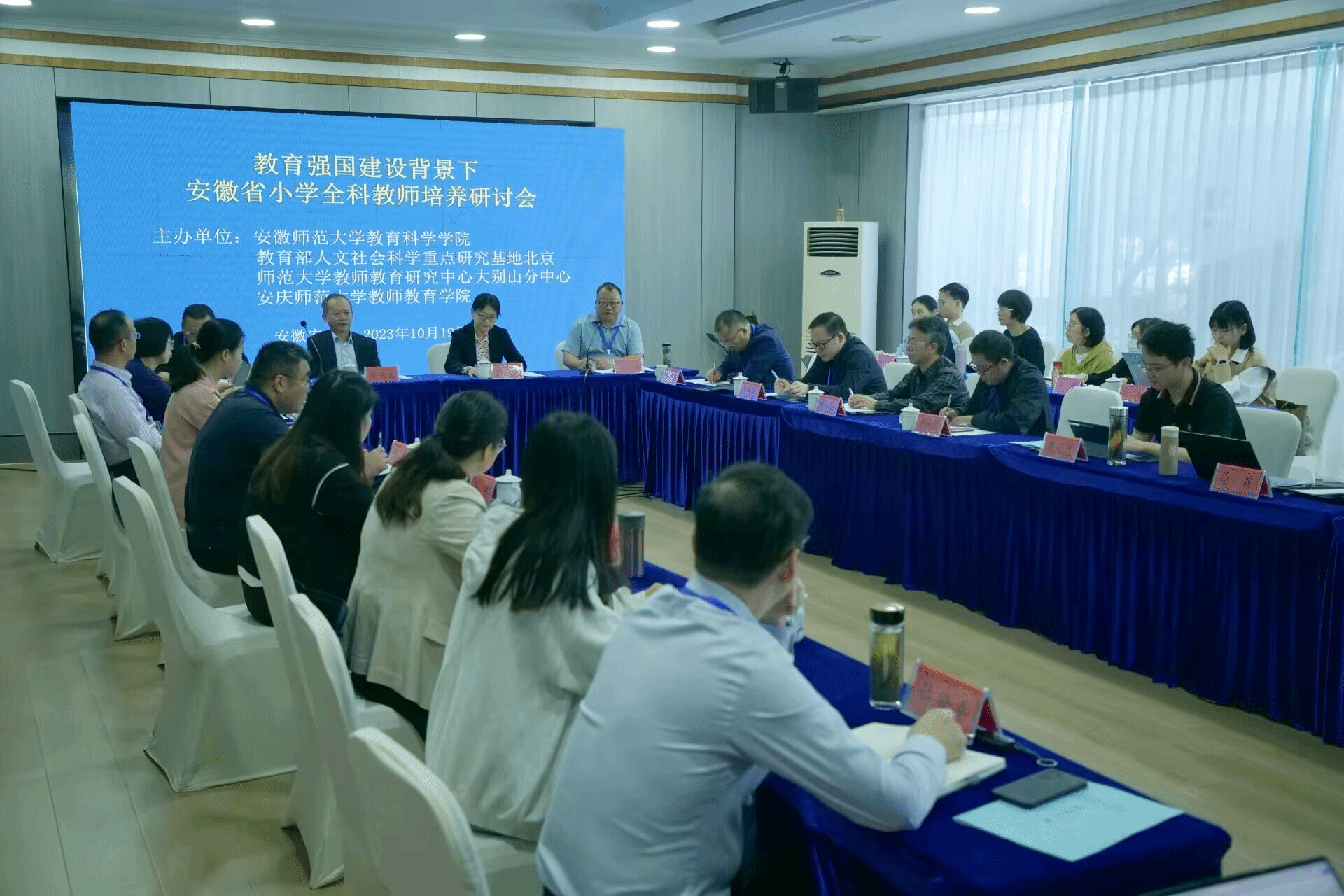10月19日,由教育部人文社会科学重点研究基地北京师范大学教师教育研究中心大别山分中心、beat365英国官方网站教师教育学院联合安徽师范大学教育科学学院主办的“教育强国建设背景下安徽省小学全科教师培养”研讨会在安庆召开。长江学者特聘教授、安徽师范大学阮成武教授,省内其他高校的相关院长、系主任等50余位专家学者出席会议。校党委书记许继荣会见与会代表。