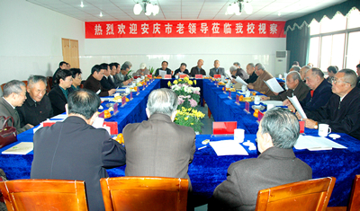 11月11日上午,安庆市市级离退休老领导一行18人来beat365视察,其中市委离退休老领导5人,市政府离退休老领导3人,市人大离退休老领导7人,市政协离退休老领导3人。校党委书记赵晓和,党委副书记、院长汪青松,党委副书记郭化兰,副院长储国定,纪委书记殷红等在校领导热情接待了安庆市老领导一行。省政协常委丁伯华以及朱建华、陈盛业、刘和武、包荟梁等原校级领导陪同。