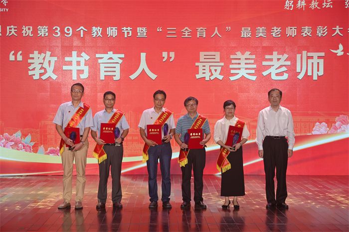 三十年教书育人“秋实奖”获得者杨国才、黄菊枝,“教书育人”最美老师王拥兵、张祥稳、项小燕、章礼华、程玉胜,“科研育人”最美老师刘德阳、鲍红,“辅导员年度人物”陈守朋、董小雨,“管理育人”最美老师李亦亮、吴晓峰,“服务育人”最美员工江明友、张成林等15位老师在会上受到表彰,校领导为获奖教职工颁发了奖杯和荣誉证书。