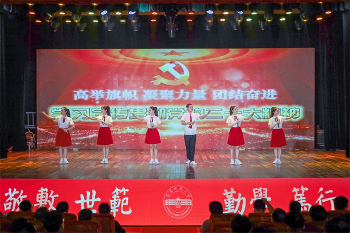 原创黄梅戏《戏韵悠扬讴歌党》,呈现了党领导人民在革命、建设、改革的伟大实践中取得的历史成就,激励全体师生凝聚奋进力量,接续创造新的辉煌。原创现代舞《延乔路上》,演绎了陈氏兄弟延年、乔年以生命创造青春之国家、青春之民族的坚定选择和无悔付出,现场师生深为感动、备受激励。歌伴舞《最美的你》,盛情讴歌了老师们敬业爱生、无私奉献的精神,向老师们表达了崇高的敬意和诚挚的感谢。