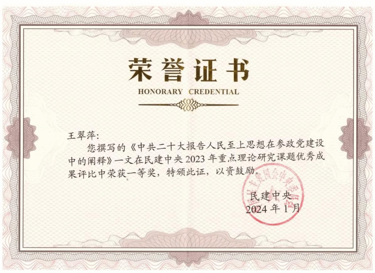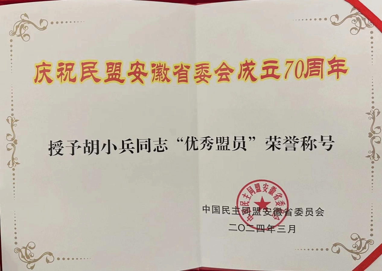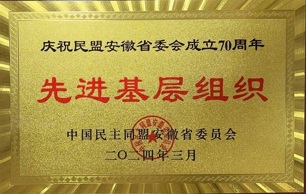 近日,民建中央发布关于表彰2023年重点理论研究课题优秀成果暨优秀组织奖的决定,民建beat365英国官方网站支部主委王翠萍撰写的文章《中共二十大报告人民至上思想在参政党建设中的阐释》荣获一等奖。民盟安徽省委对2023年先进集体、优秀盟员等进行表彰,民盟beat365英国官方网站支部被授予“先进基层组织”荣誉称号,民盟beat365英国官方网站支部主委胡小兵被授予“优秀盟员”荣誉称号。