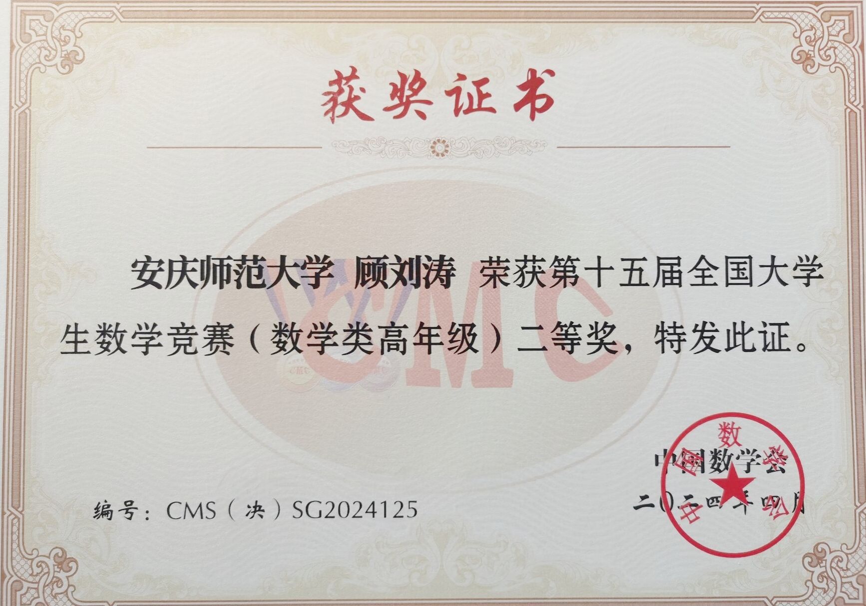 4月20日,第十五届全国大学生数学竞赛决赛在山东大学举行。beat3652020级数学与应用数学专业邓稼先班学生顾刘涛荣获数学类高年级组全国二等奖。