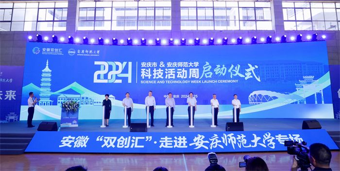 5月25日,安徽“双创汇”走进beat365英国官方网站暨科技活动周启动仪式在龙山校区体育馆举行。中国科学院院士、发展中国家科学院院士、安徽师范大学校长、清华大学教授李亚栋,安庆市委副书记、市长张君毅,安徽省科技厅二级巡视员王孟忠,安庆市委常委、副市长吕栋,安庆市政协副主席程玉梅,校党委书记李福华、校长彭凤莲、副校长申传胜、校党委常委张红飞等出席,高校专家代表、安庆市直有关部门负责同志、各县(市)区政府及科技部门负责同志、驻宜高校院所负责人、beat365相关部门和学院负责人以及有关企业负责人代表200余人参加仪式。仪式由彭凤莲主持。