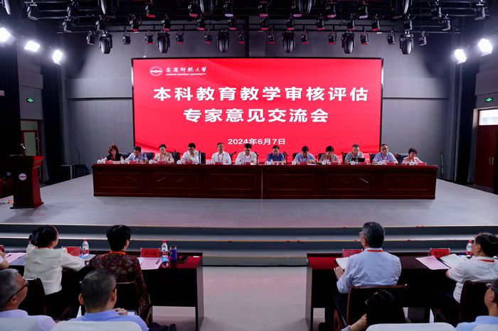 6月7日上午,审核评估专家意见交流会在龙山校区报告厅举行。专家组全体成员,校党政领导,各学院党政主要负责人、分管教学、学生工作负责人,各职能部门、直属单位主要负责人,校教学督导员参加会议。安徽省教育评估中心主任汪开寿出席会议。会议由林松柏主持。
