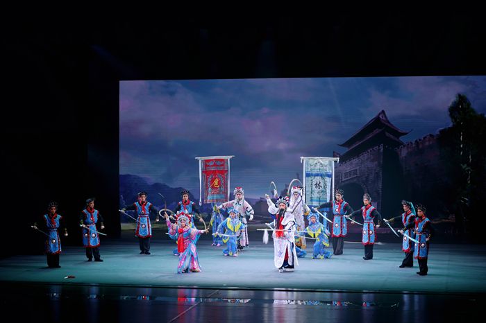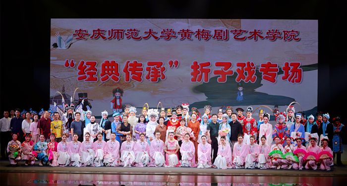 6月8日晚,“经典传承·黄梅戏折子戏专场”在灵动脱俗的戏曲舞蹈云裙水袖中拉开帷幕。演出现场依次上演了《别洞观景》《打金砖》《青萍刺目》《渔网会母》《陈三两爬堂》《活捉》《状元府》《投江》《扈家庄》等黄梅戏经典折子戏,此外还有花鼓灯《抢板凳》等极具徽风皖韵的经典作品。