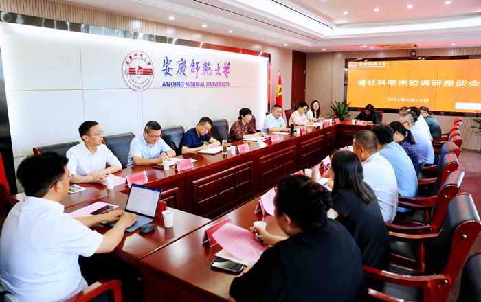 6月19日,安徽省社会科学界联合会党组成员、副主席周祥飞一行来校调研。校长彭凤莲,校党委常委陈秀出席座谈会。发展规划处、科研处、大别山区域发展研究院、相关学院和科研平台负责人参加座谈会。座谈会前,校党委书记李福华会见周祥飞一行。