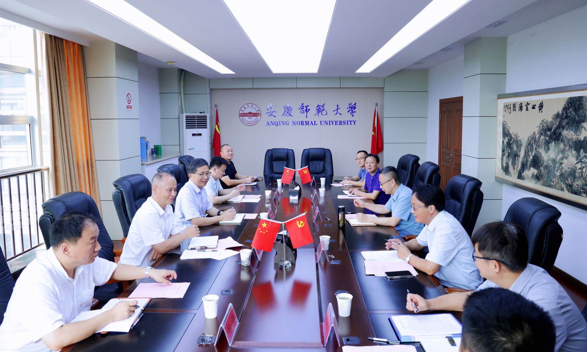 曾黎明对学校的接待表示感谢。他介绍了安徽师范大学近年来后勤工作情况、来校考察调研的主要目的。参会人员就合同节水项目、校园绿化维护工作进行了探讨,交换了意见。