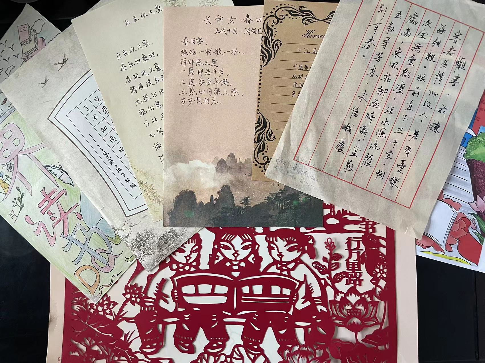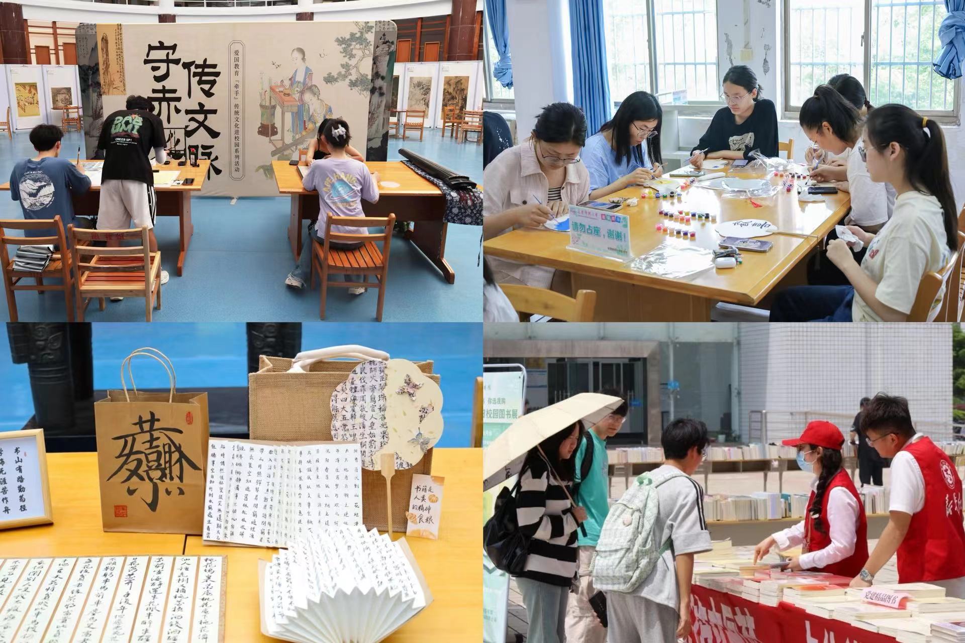 墨韵书展,书香校园。充分挖掘馆藏资源,围绕世界读书日,学校举办了主题线下作品展;征集了以”世界读书日,‘悦’读正当时”——图书馆&世界读书日的主题海报作品,评选出了10幅优秀作品进行了线上展示。线上线下同步展出了“守赤心 传文脉——爱国‘教育’牵手传统文化进校园的主题画展,深化阅读服务,营造了书香校园的浓厚氛围。