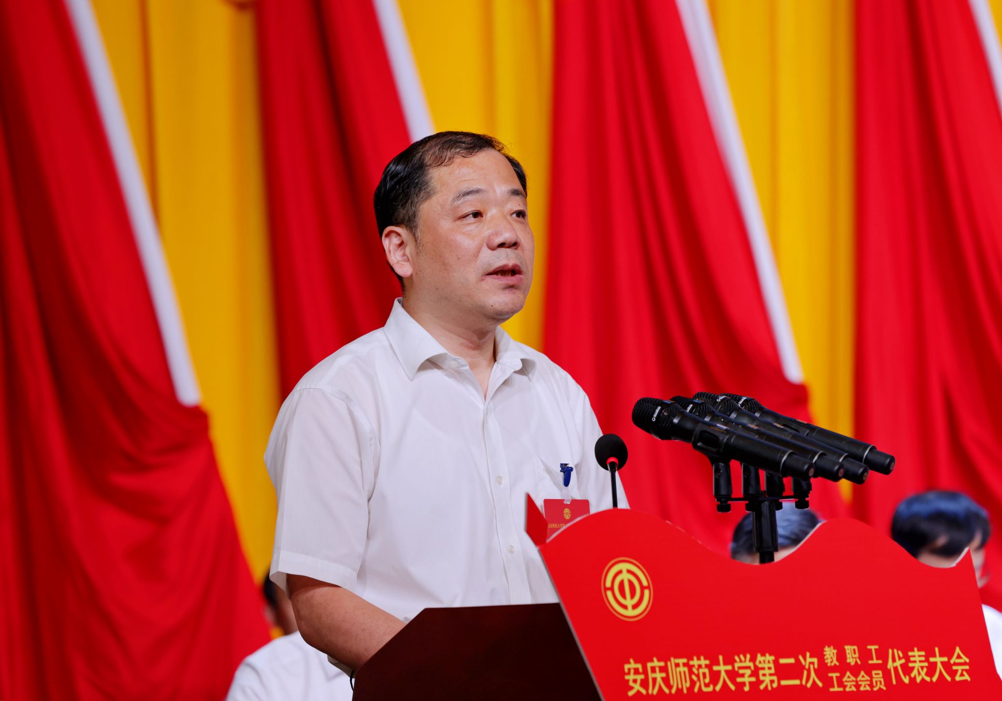 王耀武代表安庆市总工会致贺辞。beat365团委负责人代表学校群团组织致贺辞。