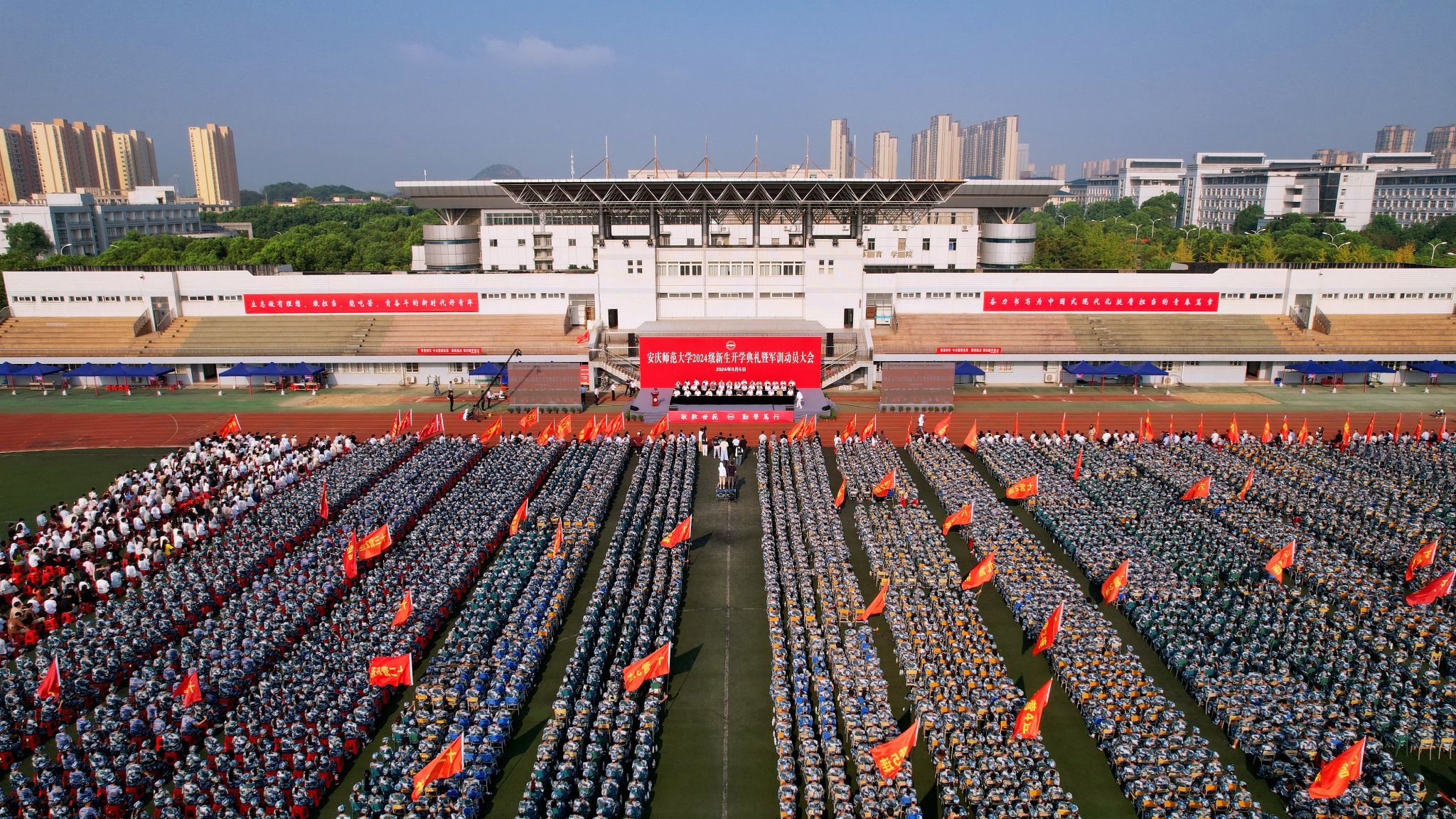 典礼上,学校举行了校徽佩戴仪式。校党政领导、校友代表、武警安庆支队指战员为新生代表佩戴了校徽。全体新生进行了庄严宣誓。