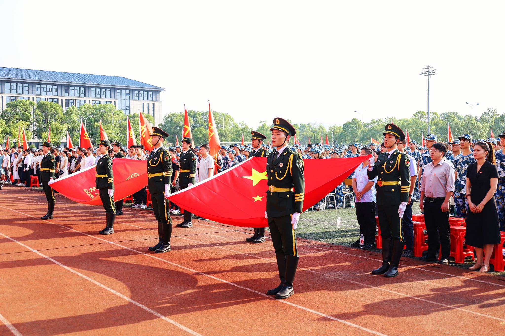 大会上,校党委书记李福华为2024级军训旅授旗。