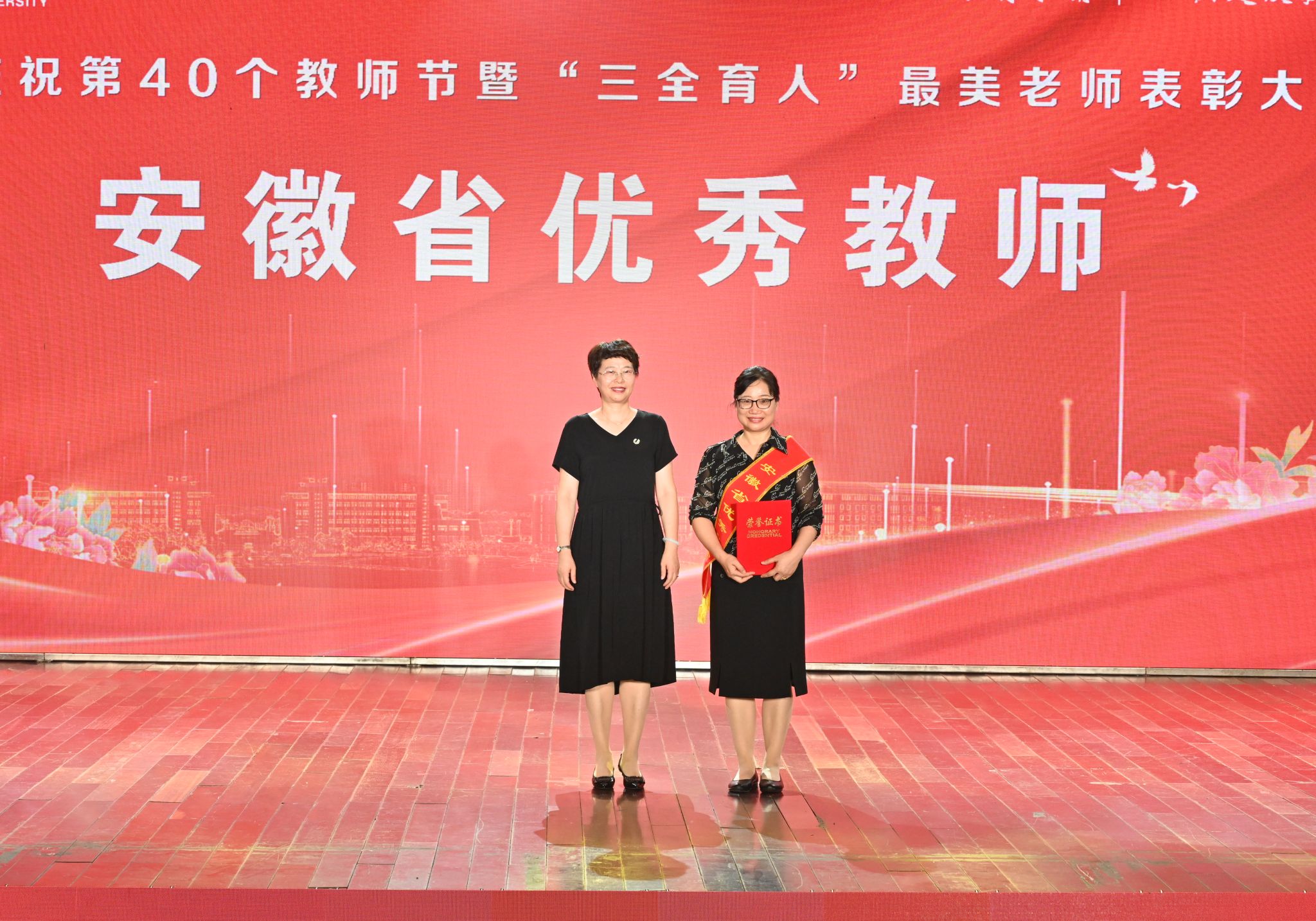 三十年教书育人“秋实奖”获得者吴甘霖、董根明,“教书育人”最美老师叶仁玉、张文、张传磊、胡小兵、黄先军,“科研育人”最美老师毛晓霞、彭长生,“辅导员年度人物”李俊、张沐阳,“管理育人”最美老师邹斌、戴传红,“服务育人”最美员工丁青、何营等15位教师在会上受到表彰,校领导为获奖教职工颁发了奖杯和荣誉证书。