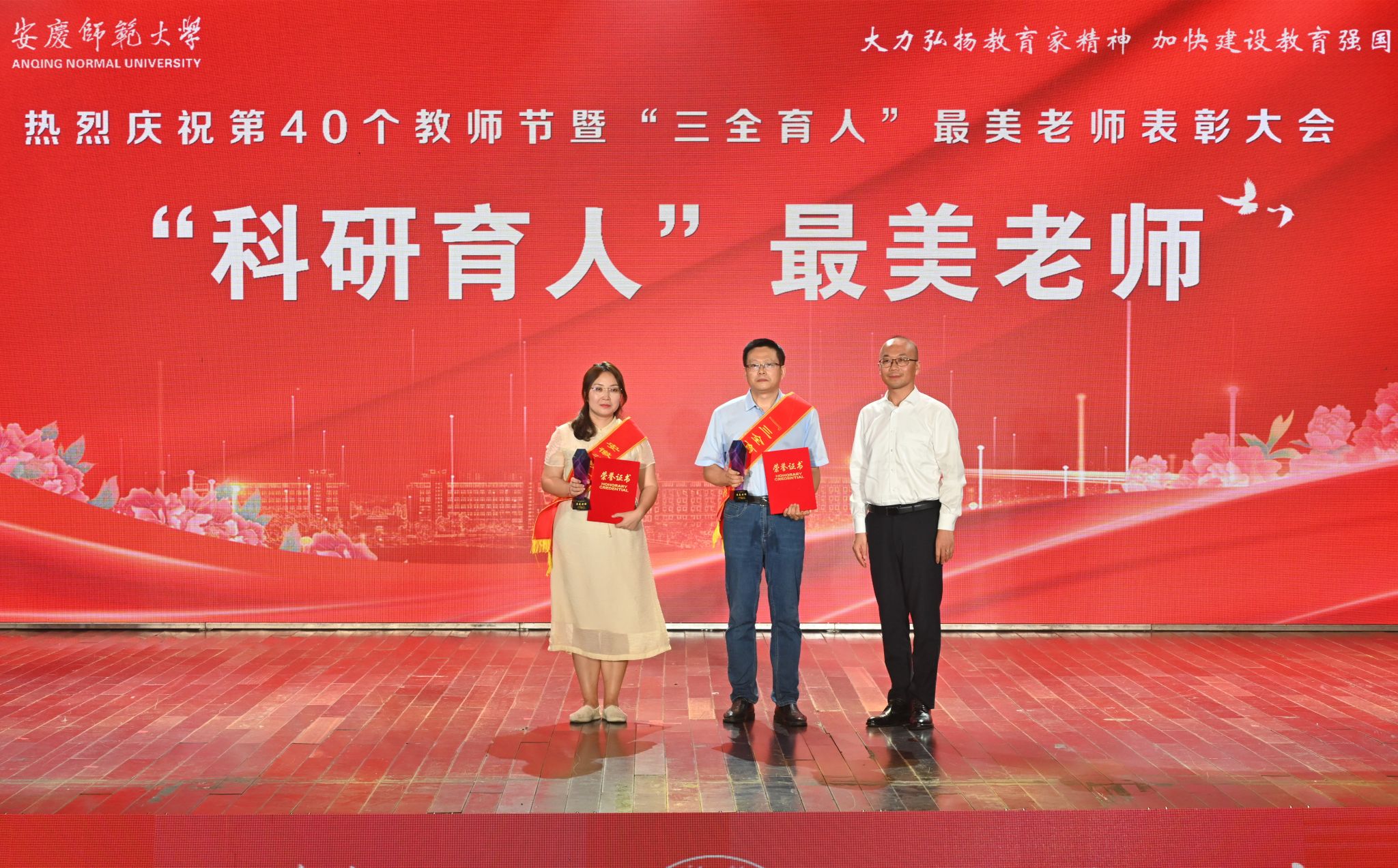 三十年教书育人“秋实奖”获得者董根明教授表示,“很荣幸能够获得三十年教书育人‘秋实奖’,对我个人来讲,这是对我37年从教生涯的最好总结,这份荣誉也应该属于勤勉尽责、默默奉献的一代又一代安庆师大人。感谢一直关心和支持我的领导和同道们,衷心祝愿学校蒸蒸日上,祝大家节日快乐。”“管理育人”最美老师邹斌教授表示“一路走来,感谢学校给我提供了学习成长的平台,让我深耕在学生思想政治教育一线,努力成长为专业化职业化的思政人;感谢各位领导、师友和同事们,是你们教会了我包容友爱、团结协作、踔厉奋发、追求卓越;感谢我的学生们,是你们教会了我成长,教会了我什么是师道情怀,什么是使命光荣。”
