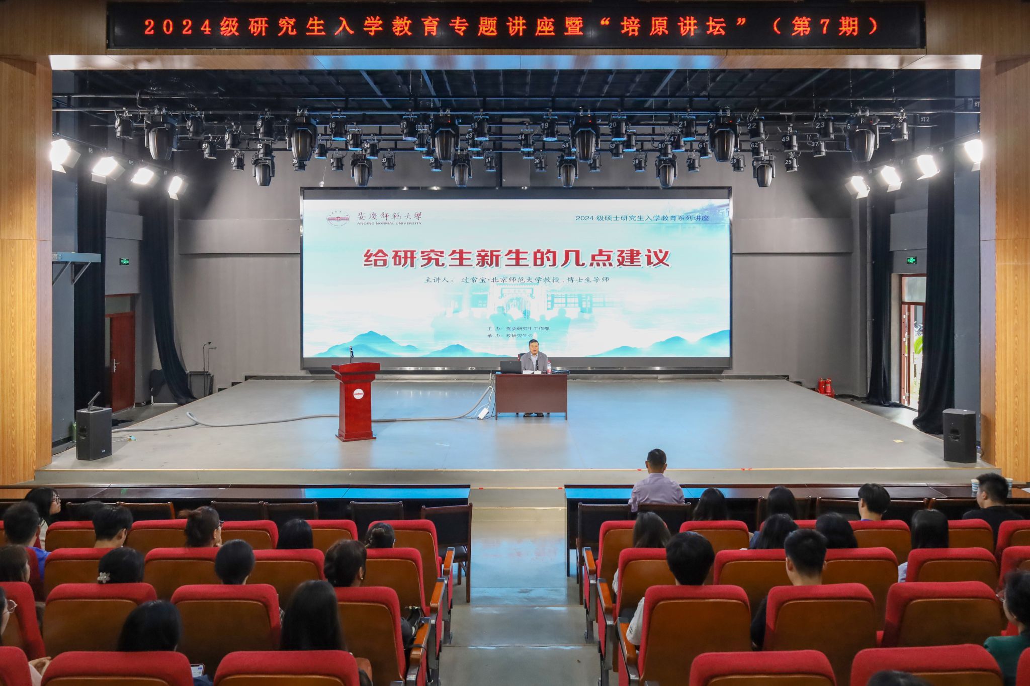 9月23日,学校在传媒学院演播厅开展2024级研究生入学教育专题讲座暨第七期“培原讲坛”,北京师范大学教授、博士生导师过常宝受邀做首场报告,200余名研究生到场聆听学习。