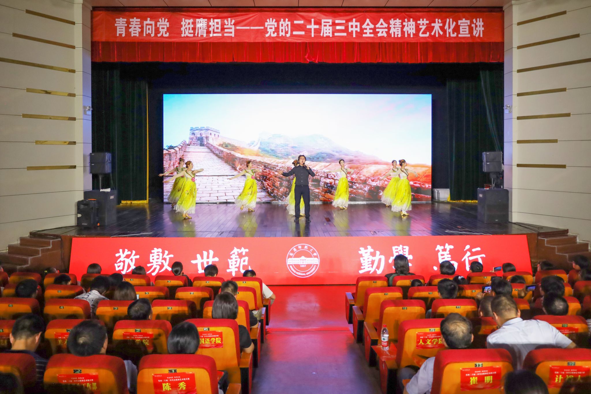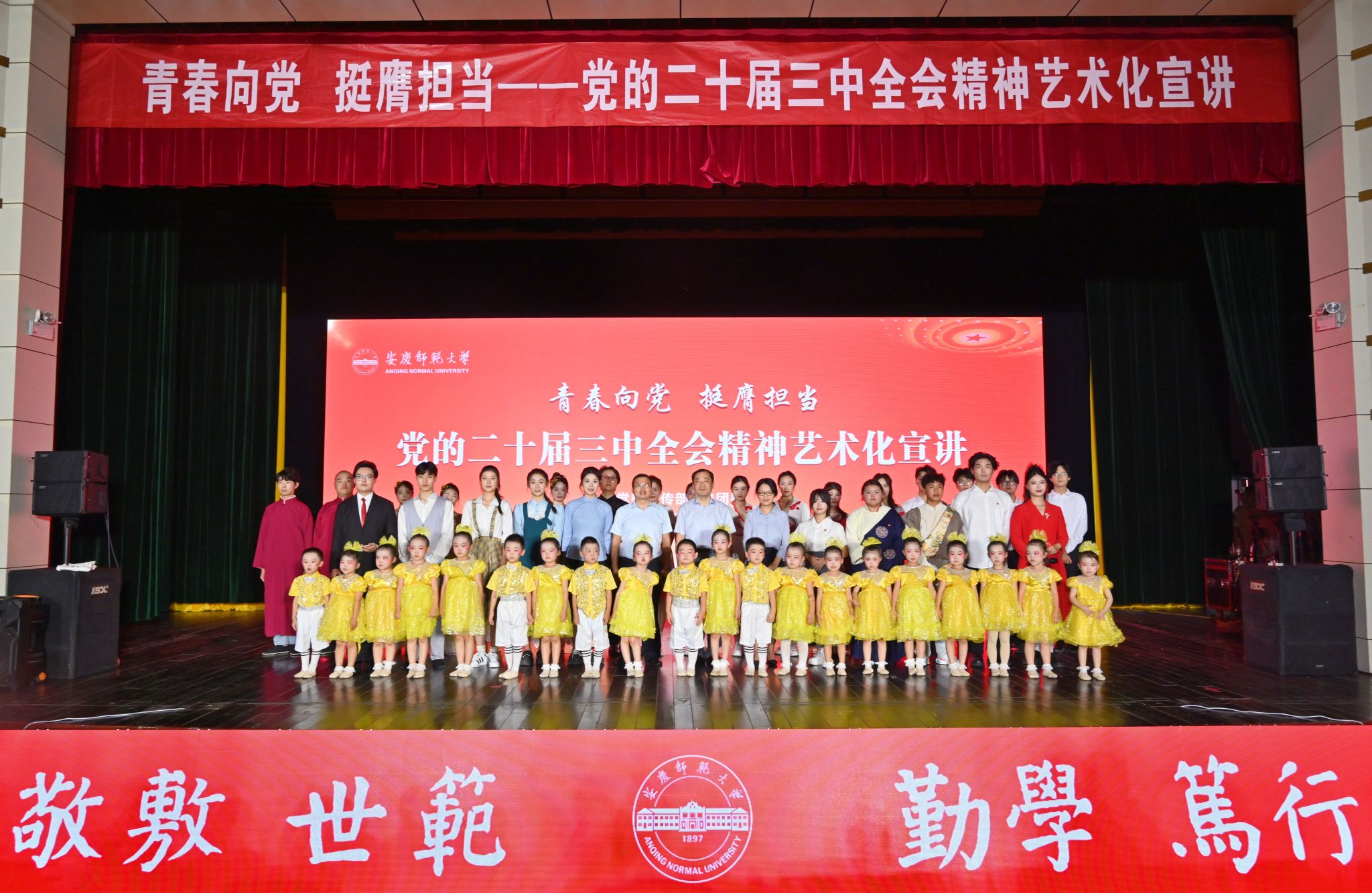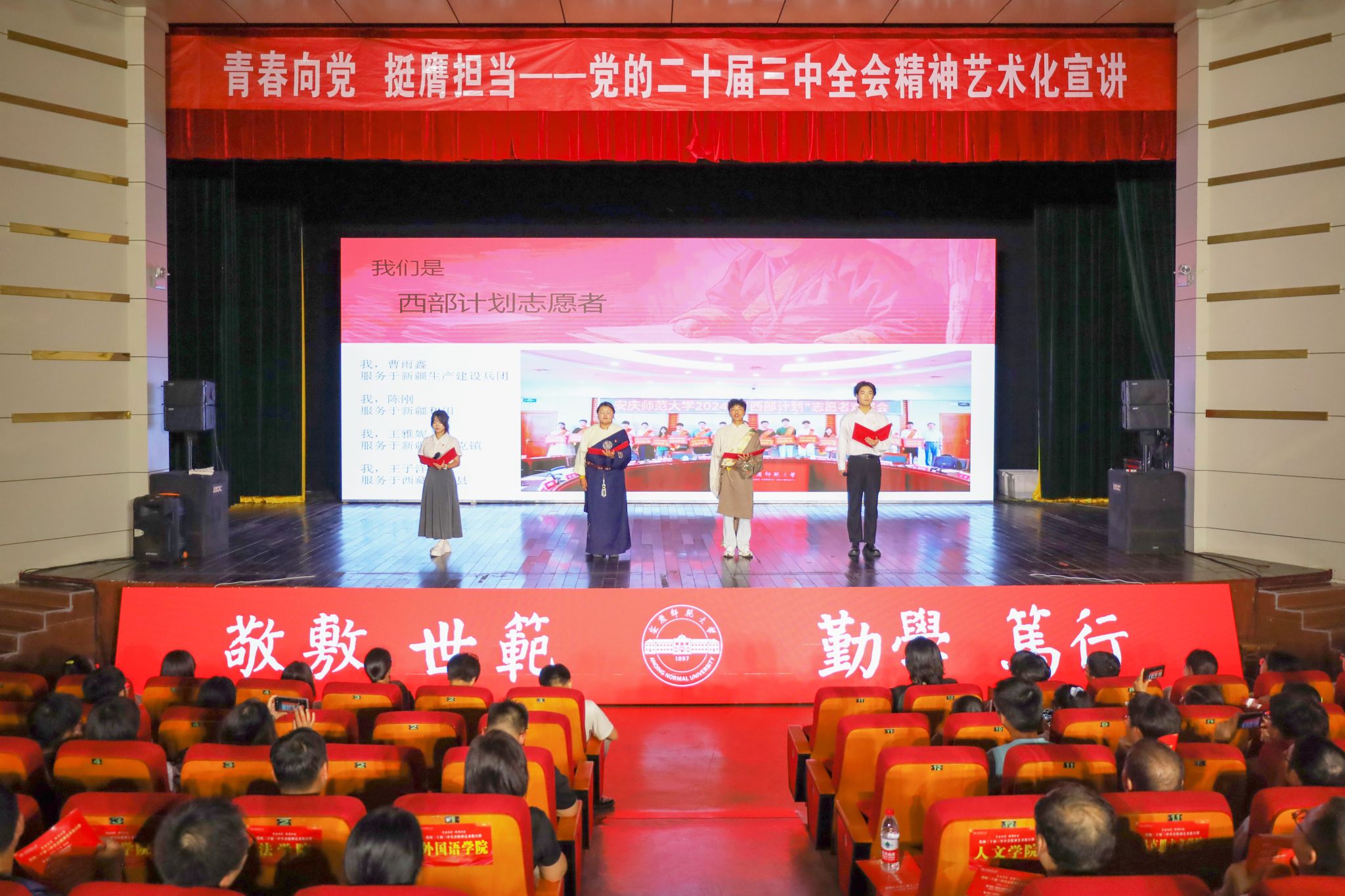 本次宣讲以“青春向党,挺膺担当”为主题,紧紧围绕学习贯彻党的二十届三中全会精神,通过歌曲、相声、舞蹈、戏曲、朗诵等多种艺术形式,生动地将新时代改革开放和党领导人民推进中国式现代化的感人故事搬上舞台,形象地将党的二十届三中全会的精神内涵和核心要义展现出来,激励广大师生加快推进特色鲜明的高水平大学建设,努力为教育强国和现代化美好安徽建设作出新贡献。
