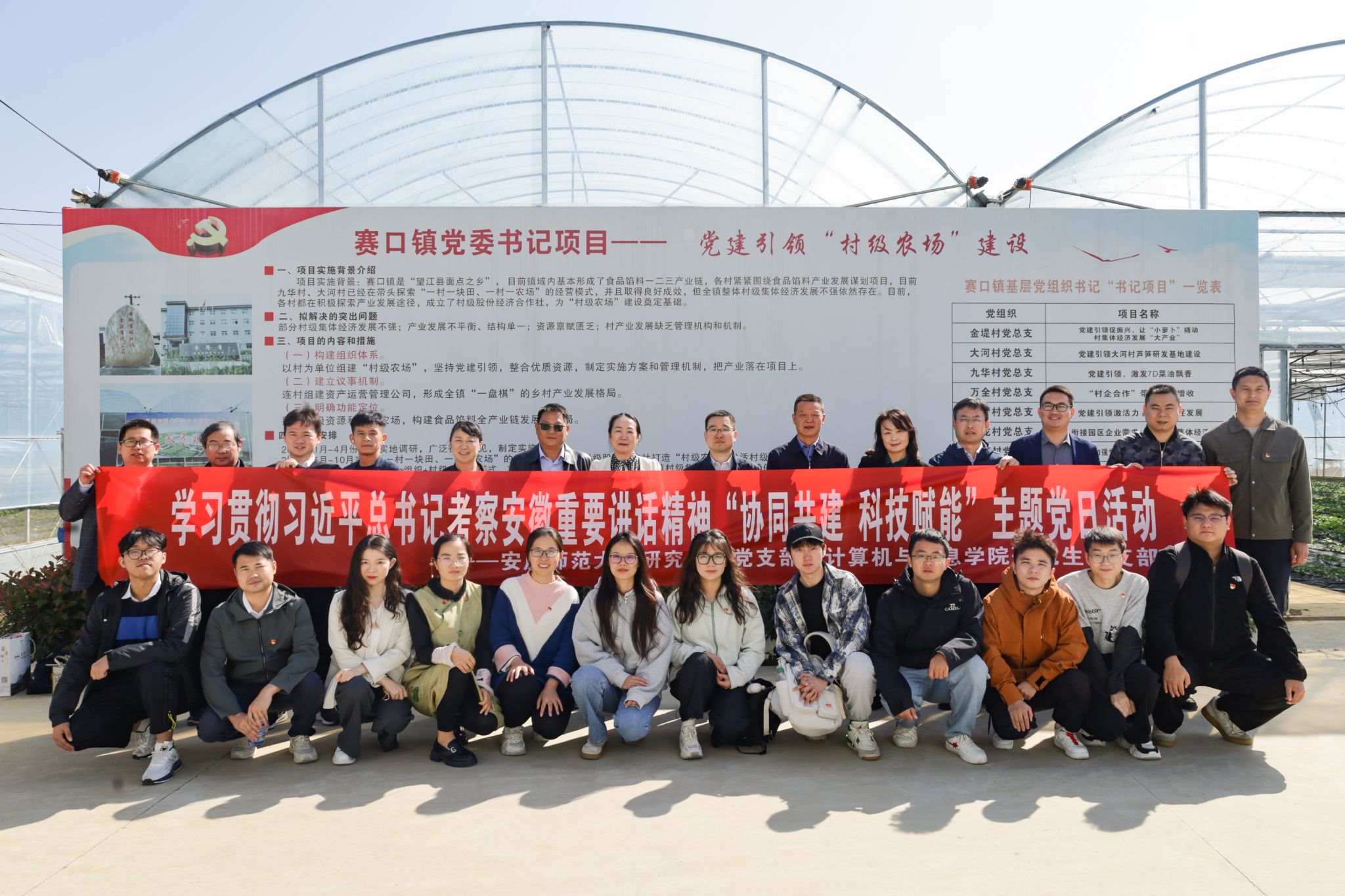 10月24日,研究生院党支部及计算机与信息学院研究生省级样板党支部主题党课暨“科技小院”揭牌仪式活动在望江县赛口镇大河村举行。校党委常委、副校长吴琼,望江县副县长杨震元出席活动,beat365研究生院全体党员,计算机与信息学院党政领导班子成员、研究生导师代表及研究生党员,望江县农业农村局及赛口镇主要负责人,安徽易刚信息技术有限公司负责人等40余人参加活动。