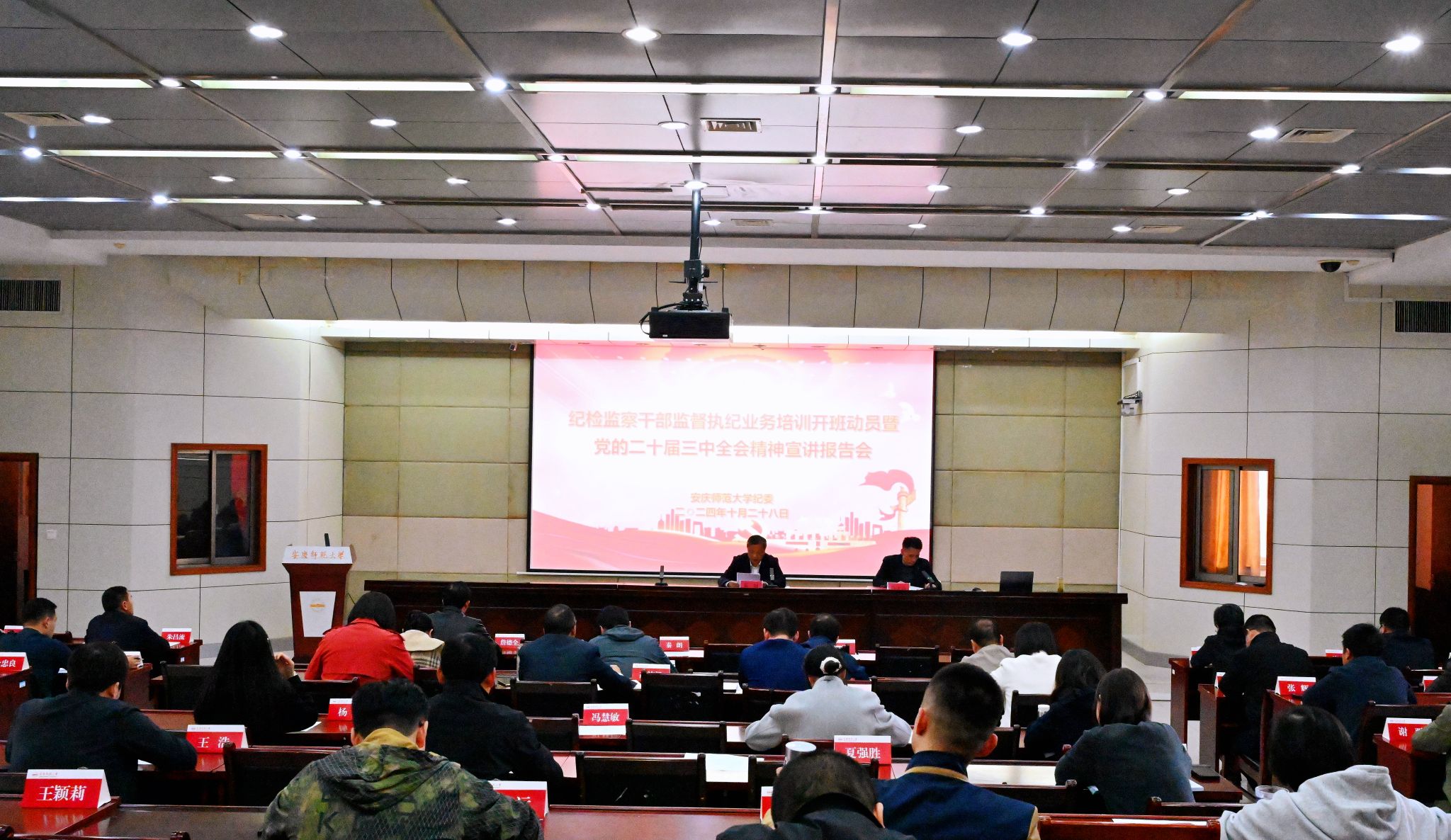 10月28日,学校纪检监察干部监督执纪业务培训班开班。校党委常委、纪委书记、监察专员秦朗作开班动员讲话并宣讲党的二十届三中全会精神。校纪委办公室主要负责人主持会议。