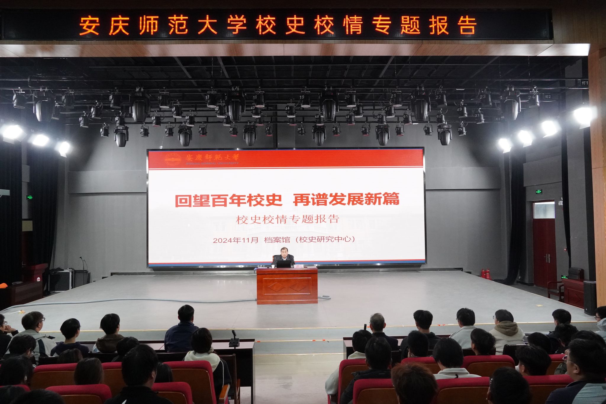报告中,刘友忠以学校历史发展脉络为经,以校史上重点人、重点事、重点物为纬,详细阐述了beat365自敬敷书院以来127年的办学历程及文化积淀,展望了学校办学前景。刘友忠指出,beat365作为安徽省高等教育的起源地,历经多次变革,但始终立足地方,面向全国,弘文励教,保持着旺盛的生机和活力。他强调,同学们要传承好红色基因,传播校史文化,努力成长为德智体美劳全面发展的社会主义建设者和接班人。要从校史中汲取明德敏行的养分,树立远大理想和社会担当意识;要从校史中汲取敬敷勤学的养分,积累渊博学识和才能;要从校史中汲取求是创新的养分,培养历史眼光和创新精神;要从校史中涵养校友情怀,增强爱校护校荣校意识。