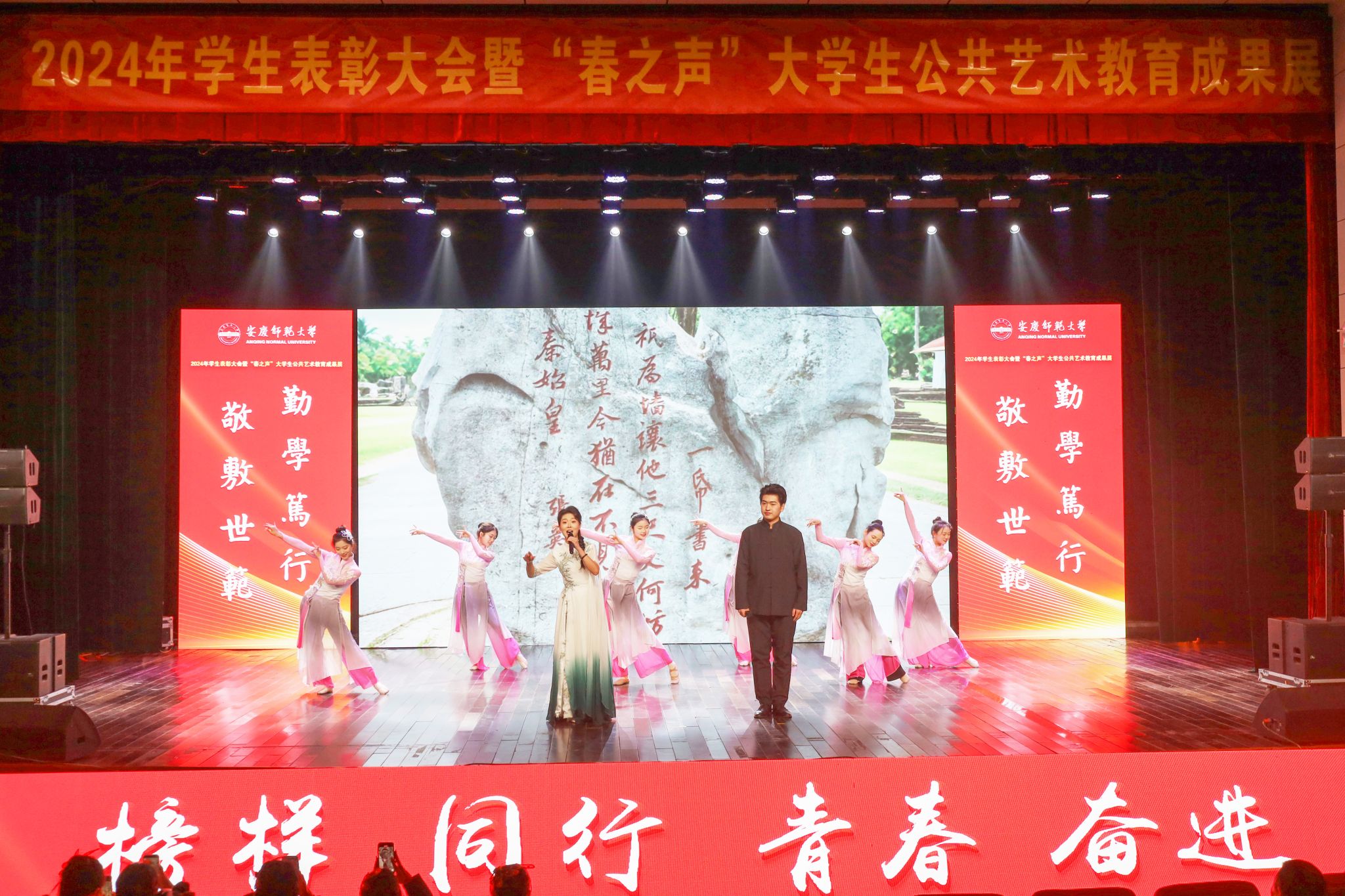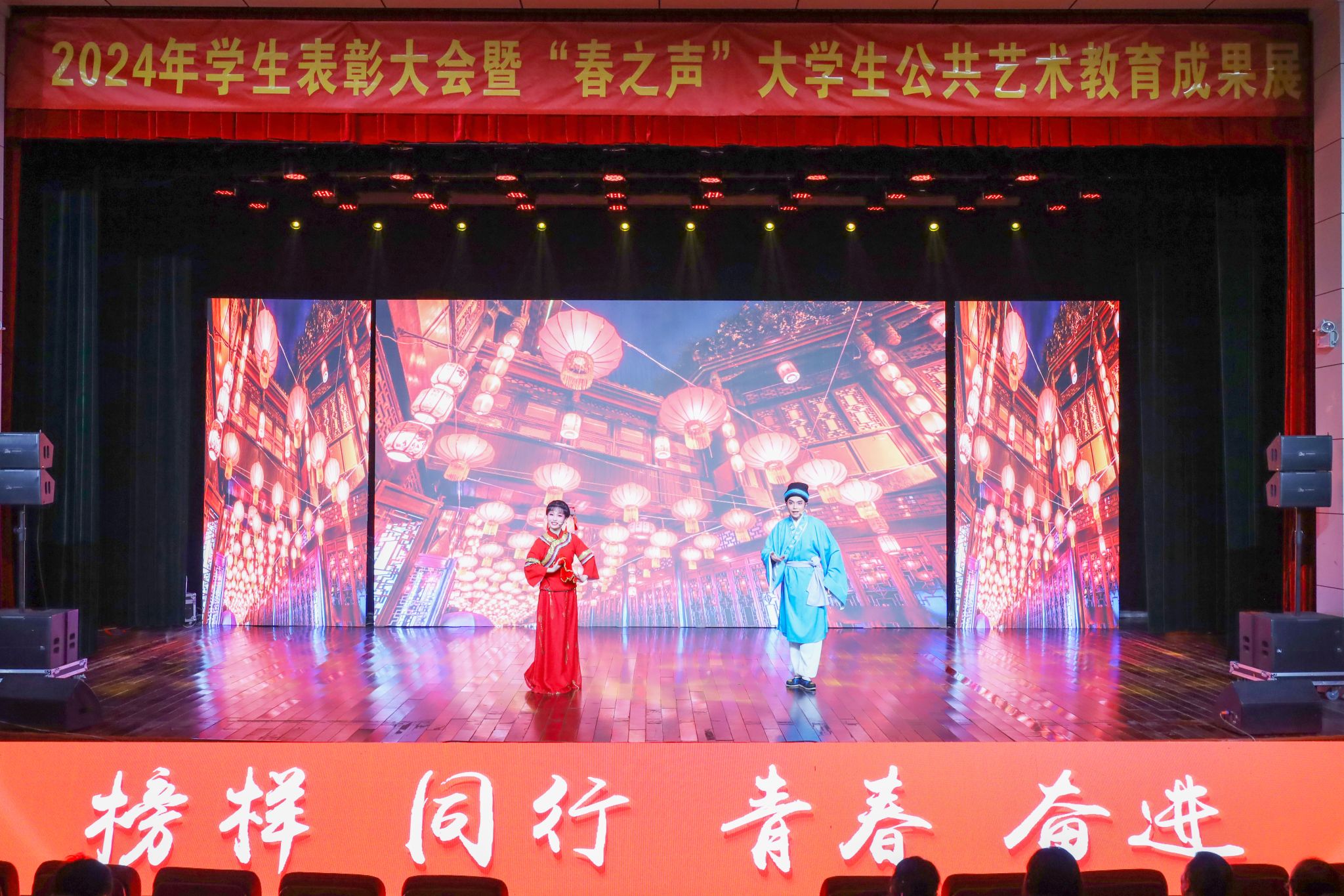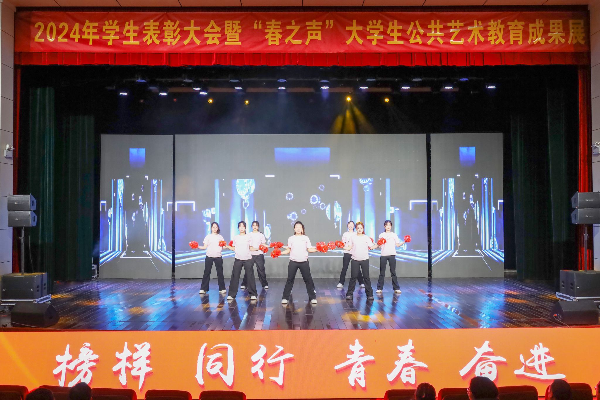 本次大会围绕落实立德树人根本任务,宣传先进典型,弘扬榜样力量,用艺术之美点亮思政之光,既是学校2024年公共艺术教育成果的一次集中展示,又是一场主题鲜明、内容丰富的思政大课。(撰稿:学生记者 赵晨阳 摄影:范龙超 学生记者 赵雯雯 编辑:江伟 审核:汪洋 许俊杰 陈秀)
