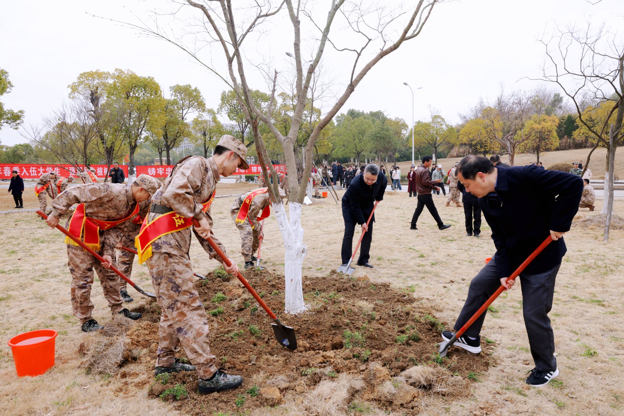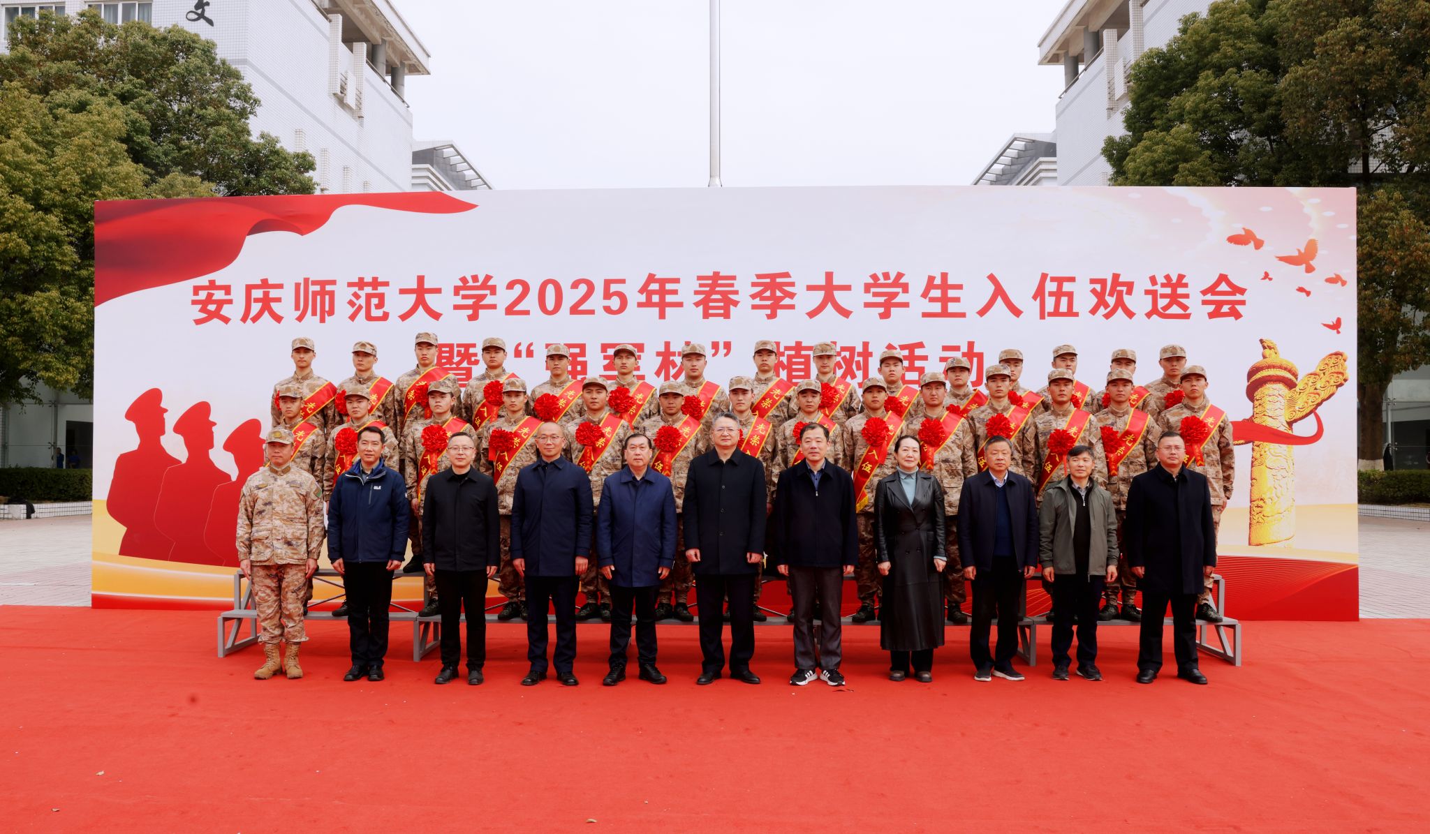 3月11日,学校举行2025年春季大学生入伍欢送会暨“强军林”植树活动。校党政领导李福华、崔明、刘友忠、吴琼、肖新、秦朗、徐晓宁、申传胜、张红飞、计裕人,大观区委常委、人民武装部部长刘晨光出席活动。教务处、学生处、安全管理处、基建与后勤管理处、团委、各学院负责人,辅导员代表、学生家长代表、全体预定新兵参加活动。