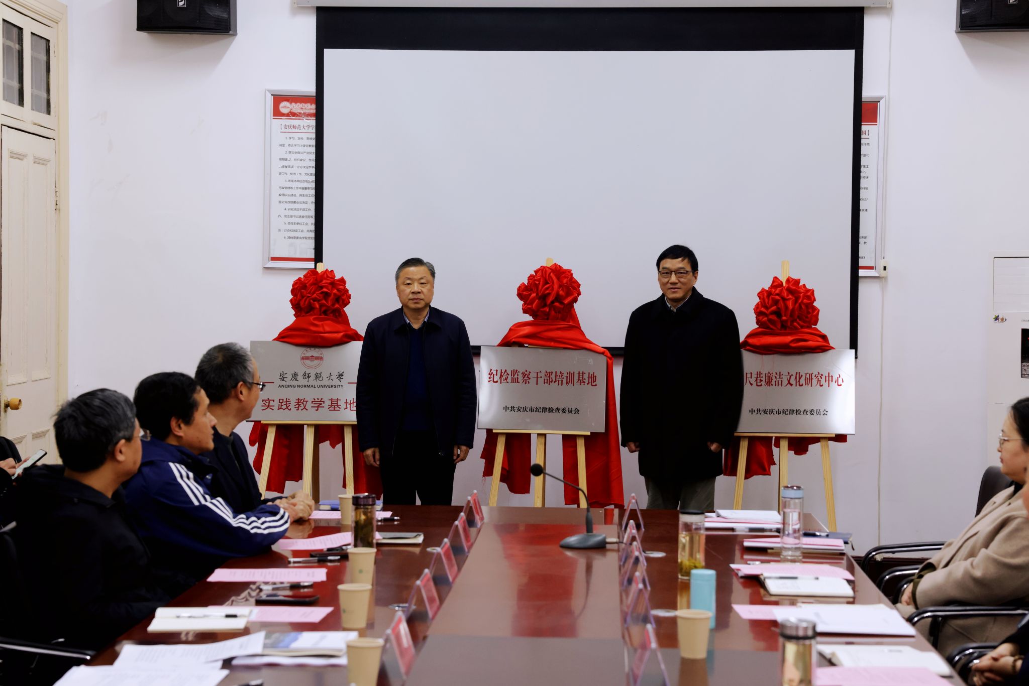 签约仪式上,耿延强和秦朗共同为安庆市纪委“纪检监察干部培训基地”“六尺巷廉洁文化研究中心”“beat365英国官方网站实践教学基地”揭牌,张帆和黄知开为专家咨询委员会成员颁发聘书。签约仪式后,观摩巡察了双方合作项目黄梅戏《戒尺》展演。(撰稿:姚祈春 摄影、编辑:江伟 审核:江贵生 赵丽丽)