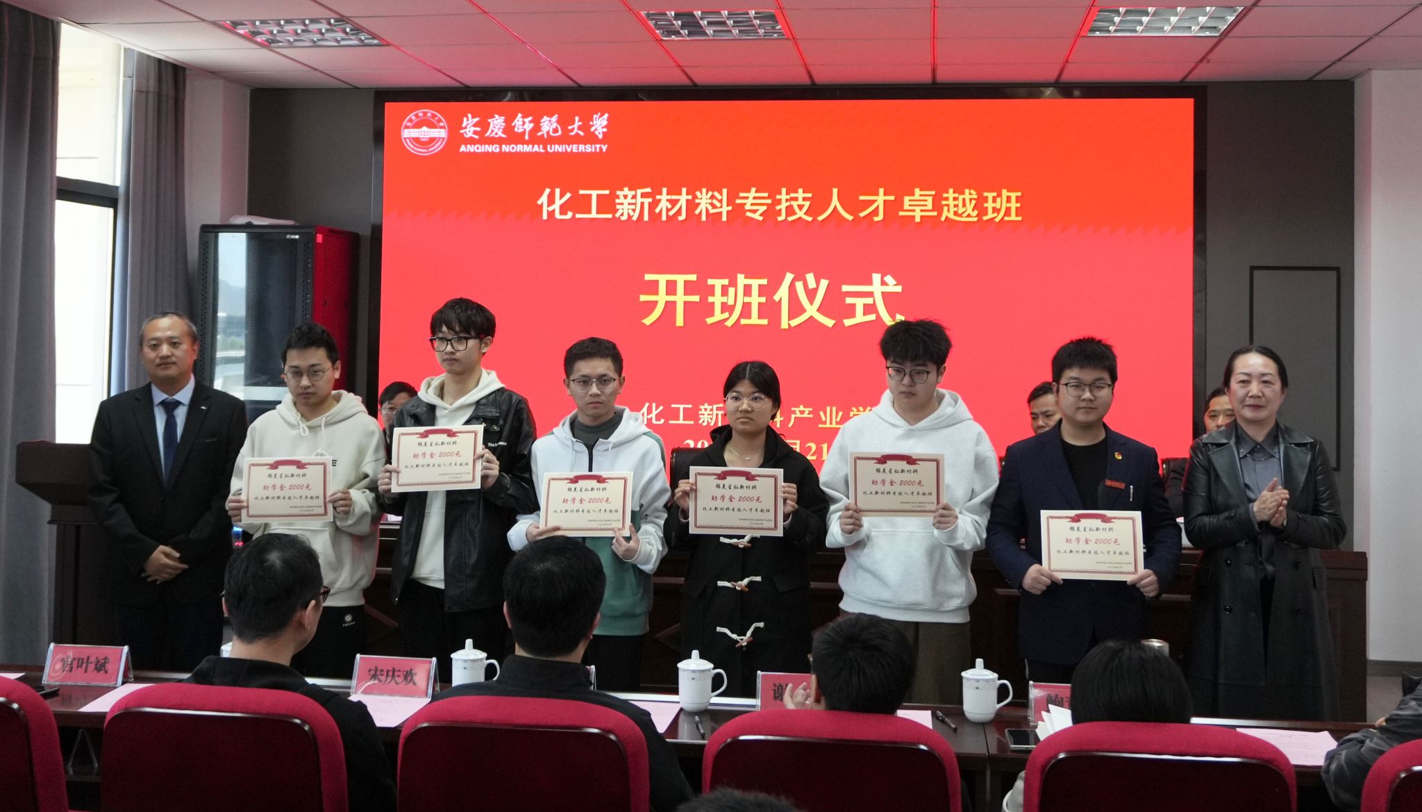 3月21日,学校举行化工新材料专技人才卓越班开班仪式。校党委常委、副校长吴琼,安庆市迎江区委常委、副区长周永生和锦美星灿新材料(安徽)有限公司董事长殷廷出席仪式。合作企业代表、教务处和化学化工学院负责人、教师代表、卓越班全体同学参加仪式。