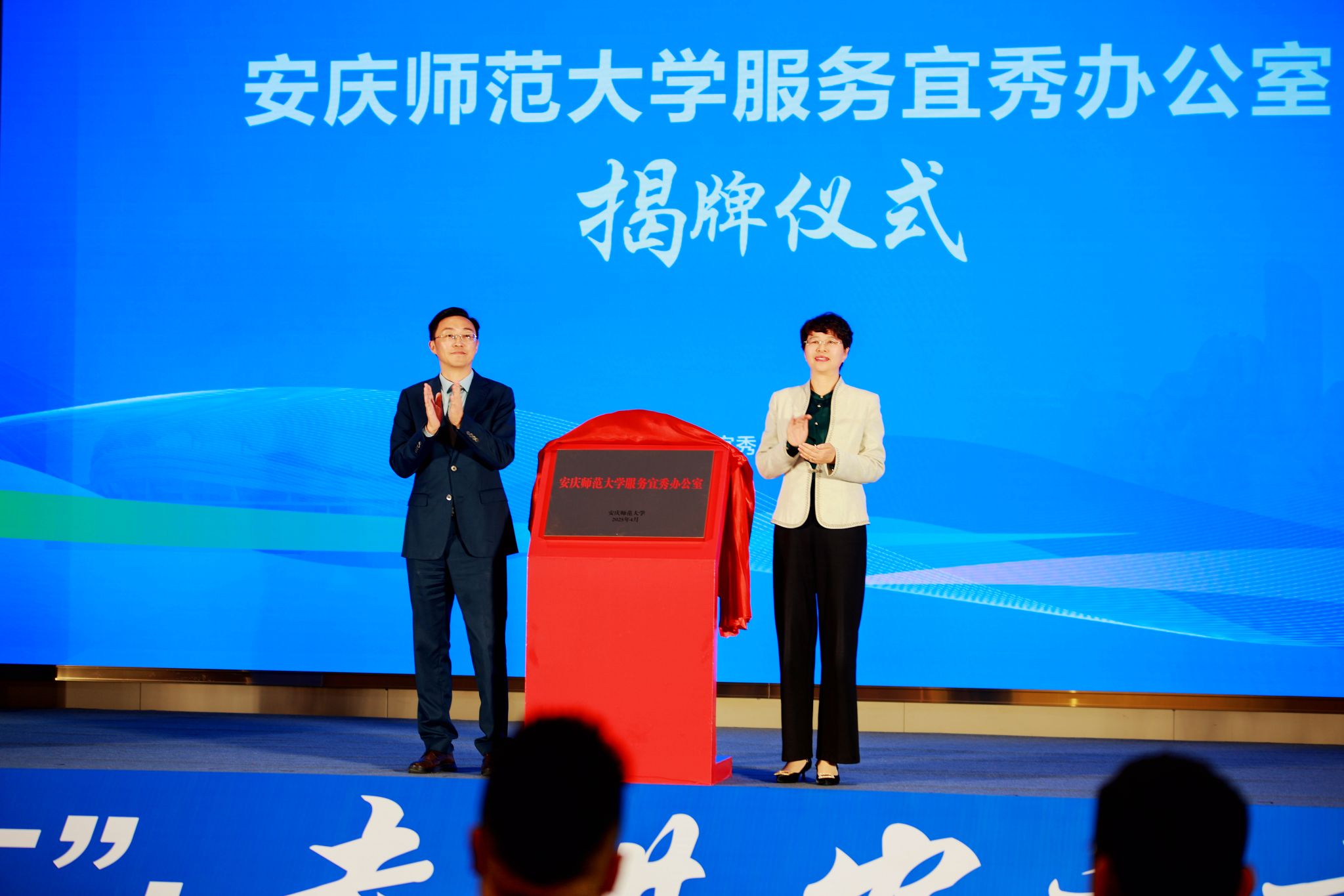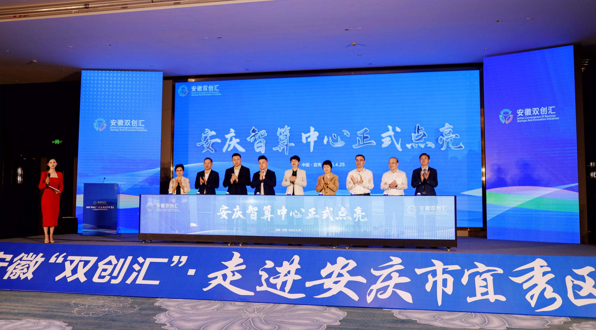 开幕式上,彭凤莲与省科技厅、安庆市人民政府、宜秀区人民政府等相关负责人参加“智算中心”点亮仪式。彭凤莲和吴曙为“beat365英国官方网站服务宜秀办公室”揭牌。
