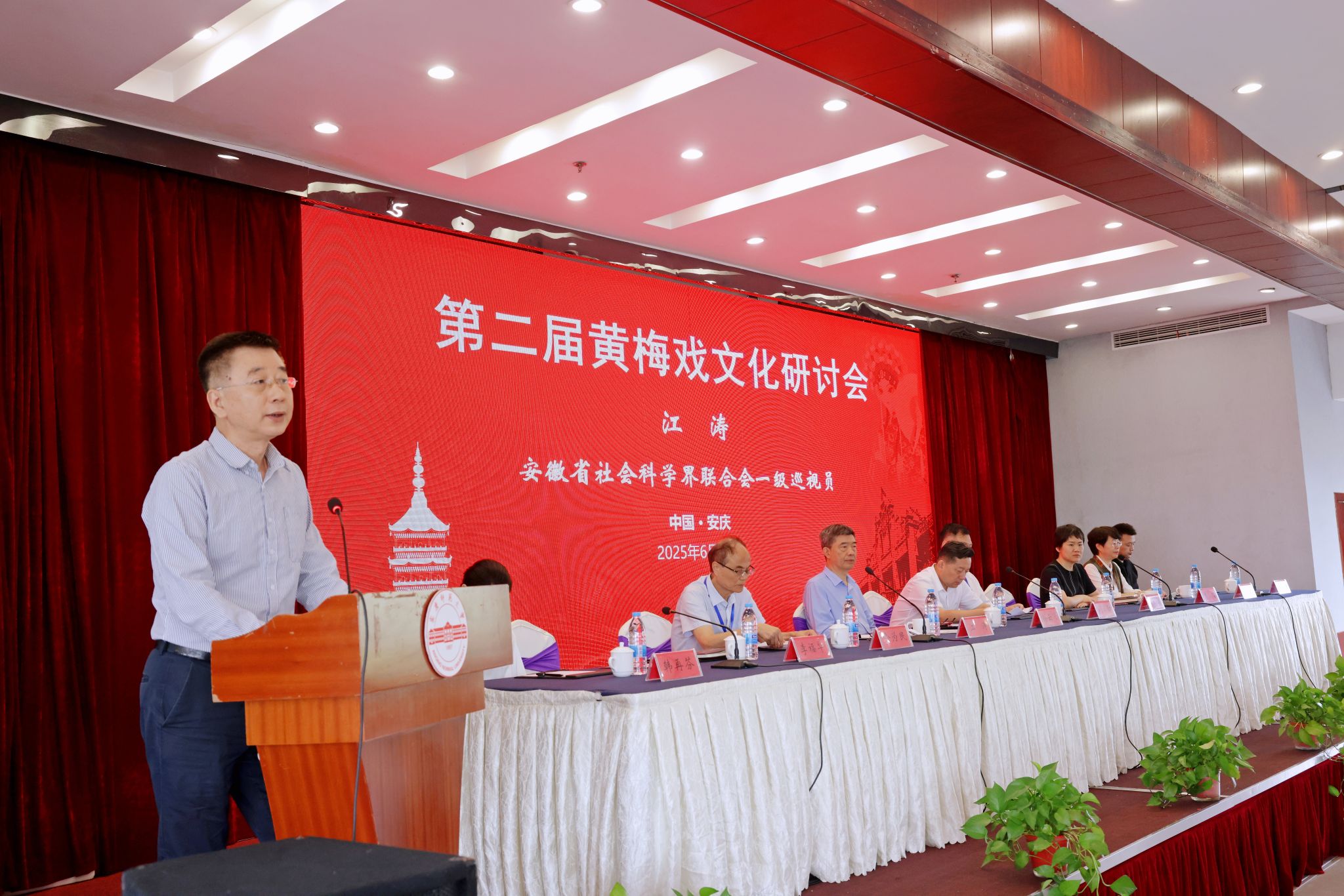 江涛在致辞中总结了全省社科界一年来认真贯彻落实习近平总书记考察安徽重要讲话精神开展五大文化研究的情况。他强调,要自觉从中华文明的角度审视黄梅戏文化的发展脉络,要进一步厘清黄梅戏文化研究的体系结构和理论方法及学术边界,要推动黄梅戏文化和旅游的深度融合,要推动黄梅戏文化传播模式逐步向鲜活多元年轻化的方向转变。期待beat365英国官方网站以筹备成立安徽省黄梅戏文化研究会为契机,进一步整合好全省黄梅戏文化研究力量,打造好特色学科体系和大型学术平台,以全体系大平台支撑大项目、大成果,形成具有安徽特色、全国标识性的黄梅戏文化研究学术品牌。