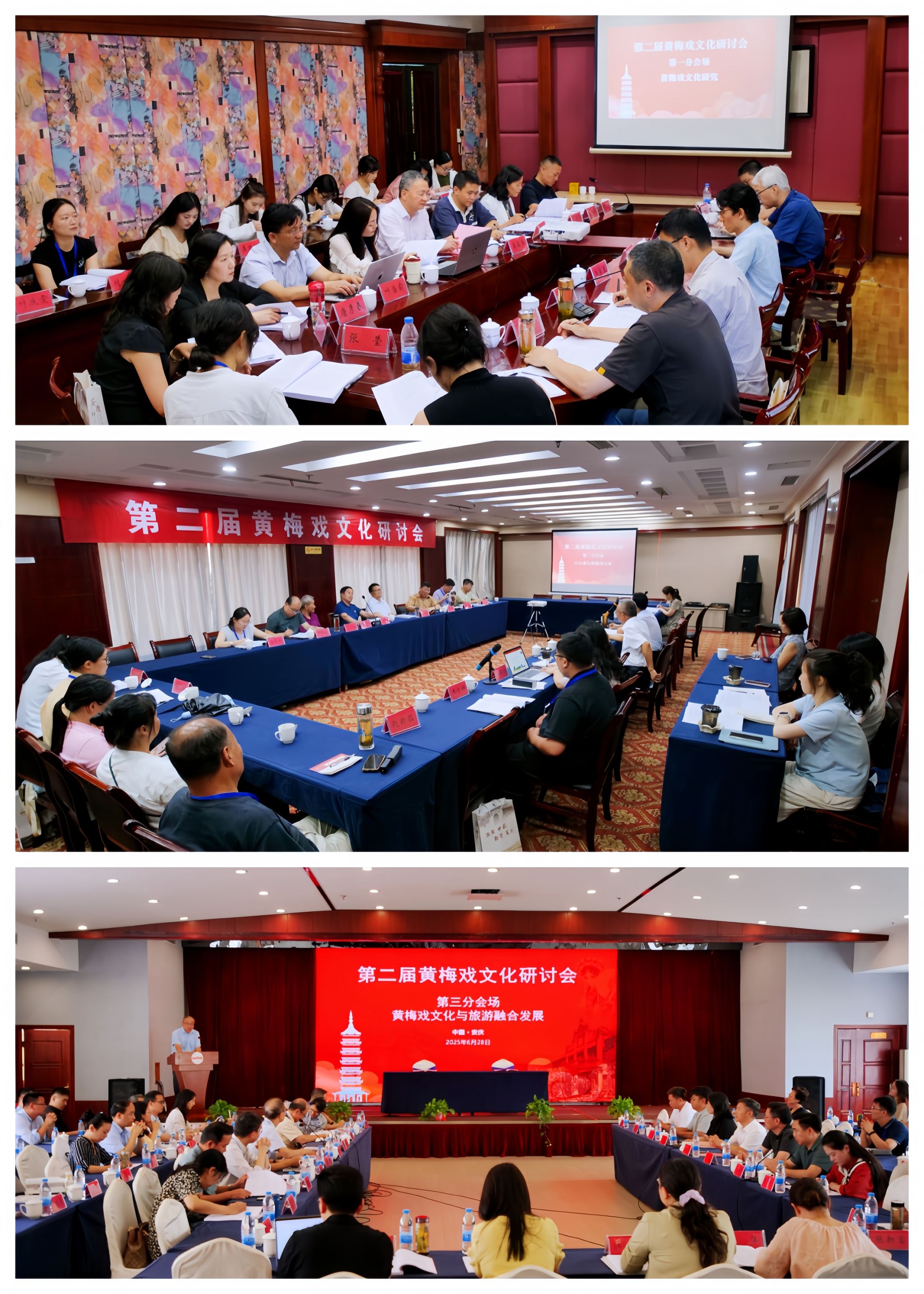 在分组讨论环节,三组与会专家分别聚焦“黄梅戏文化研究”“六尺巷与黄梅戏文化”“黄梅戏文化与旅游融合发展”三大核心议题,展开深入研讨交流。研讨期间,举行了beat365英国官方网站与安庆市文化旅游产业发展集团有限公司合作签约仪式,六个学院向与会专家集中展示了文旅融合发展成果。