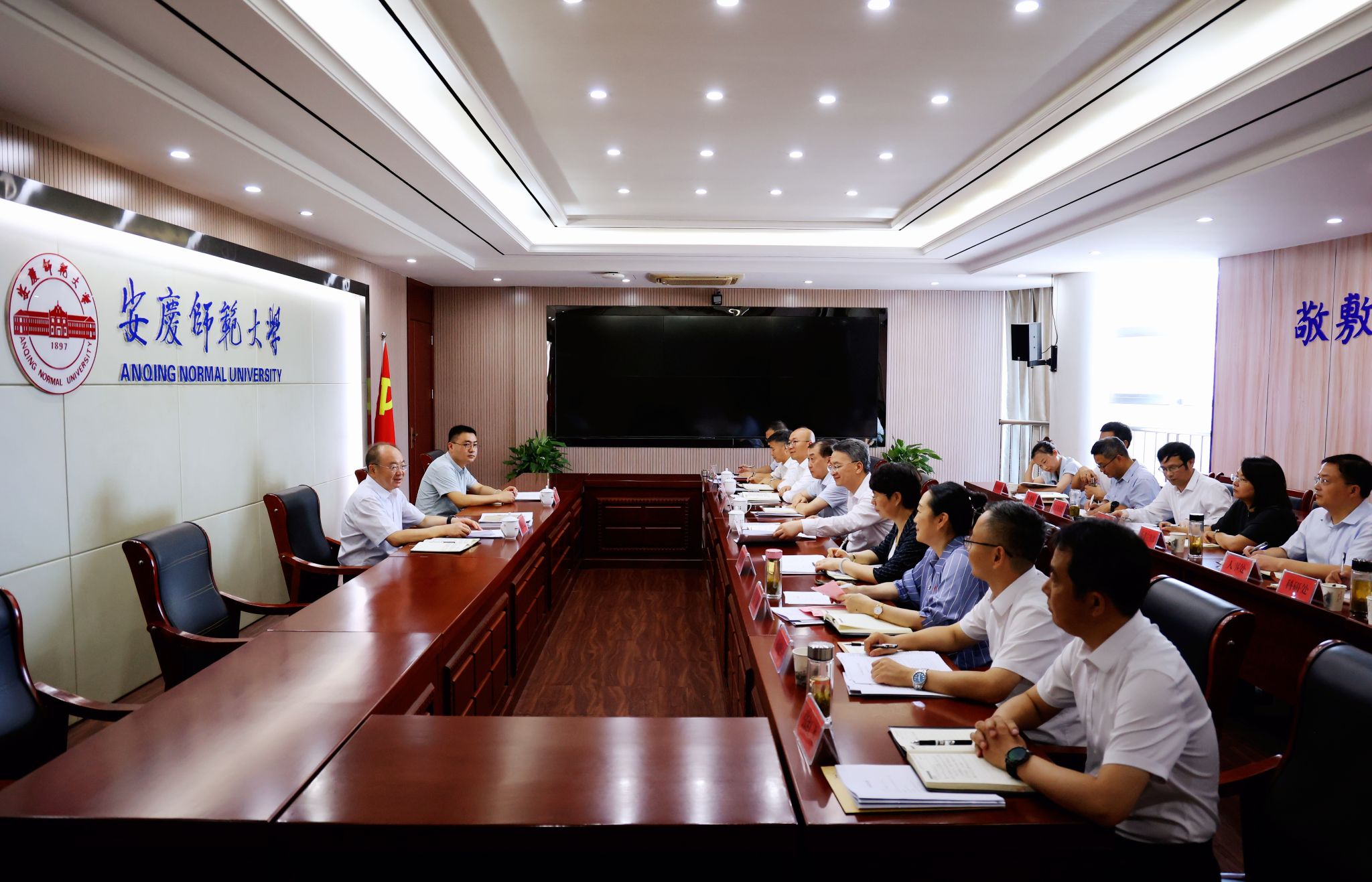 7月10日,安徽省委教育工委书记、省教育厅厅长钱桂仑来校调研。校党委书记李福华、校长彭凤莲和安庆市政府副市长李岩陪同调研。