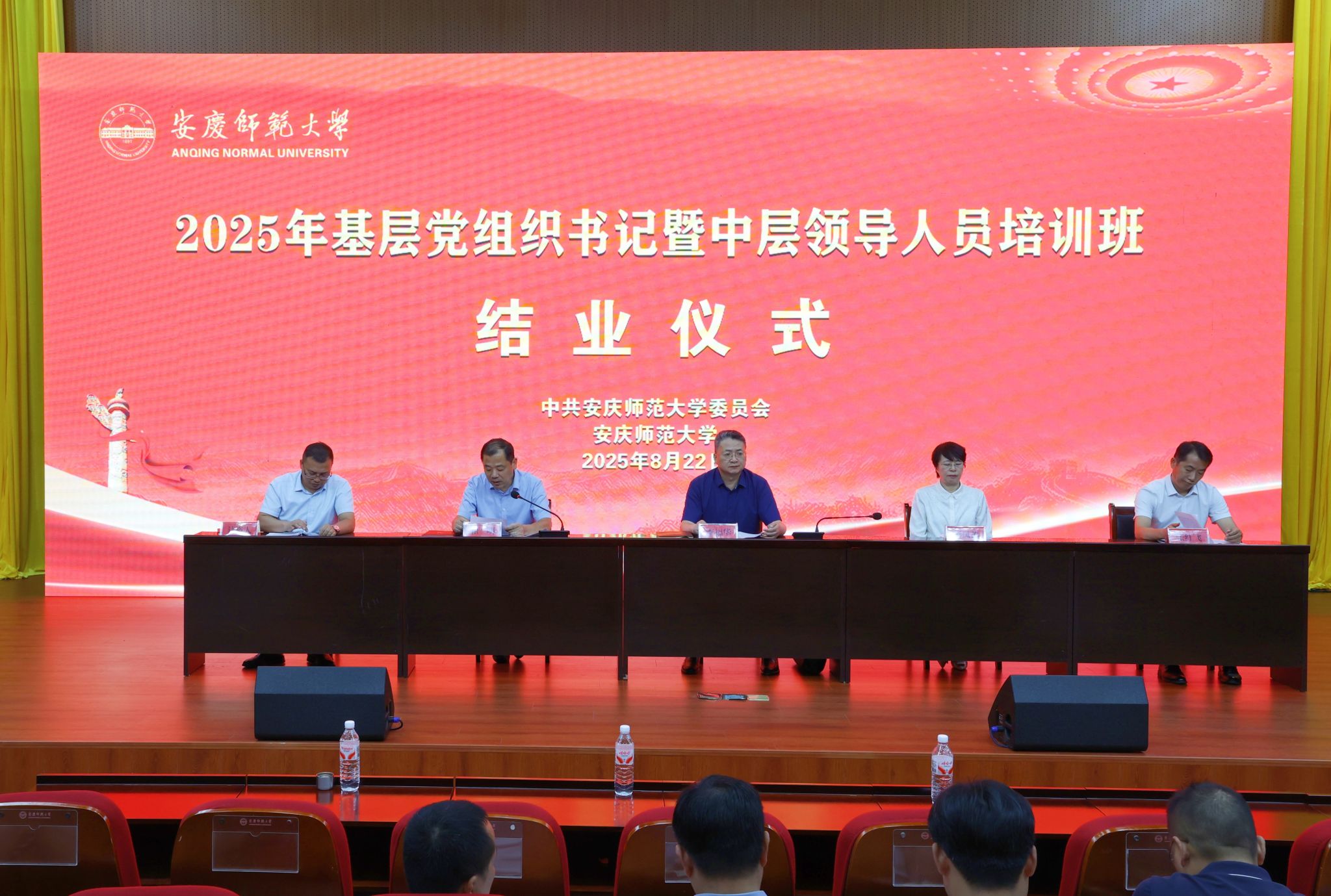 8月22日,学校举行2025年基层党组织书记暨中层领导人员培训班结业仪式。校党委书记李福华、校长彭凤莲、校党委副书记崔明、校党委常委张红飞、计裕人出席结业仪式。各院级党组织书记、副书记、机关党支部书记、“双带头人”教师党支部书记、学生党支部书记、各院级党组织秘书(组织员)、中层领导人员共271人参加结业仪式。