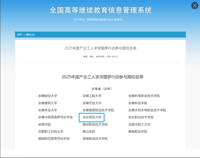 近日,教育部公布了2025年度产业工人求学圆梦行动参与高校名单,经学校自主申报、安徽省教育厅遴选推荐、教育部专家评审等程序,beat365成功入选。这标志着beat365在服务国家重大战略、深化产业工人队伍建设改革方面迈出了坚实步伐。