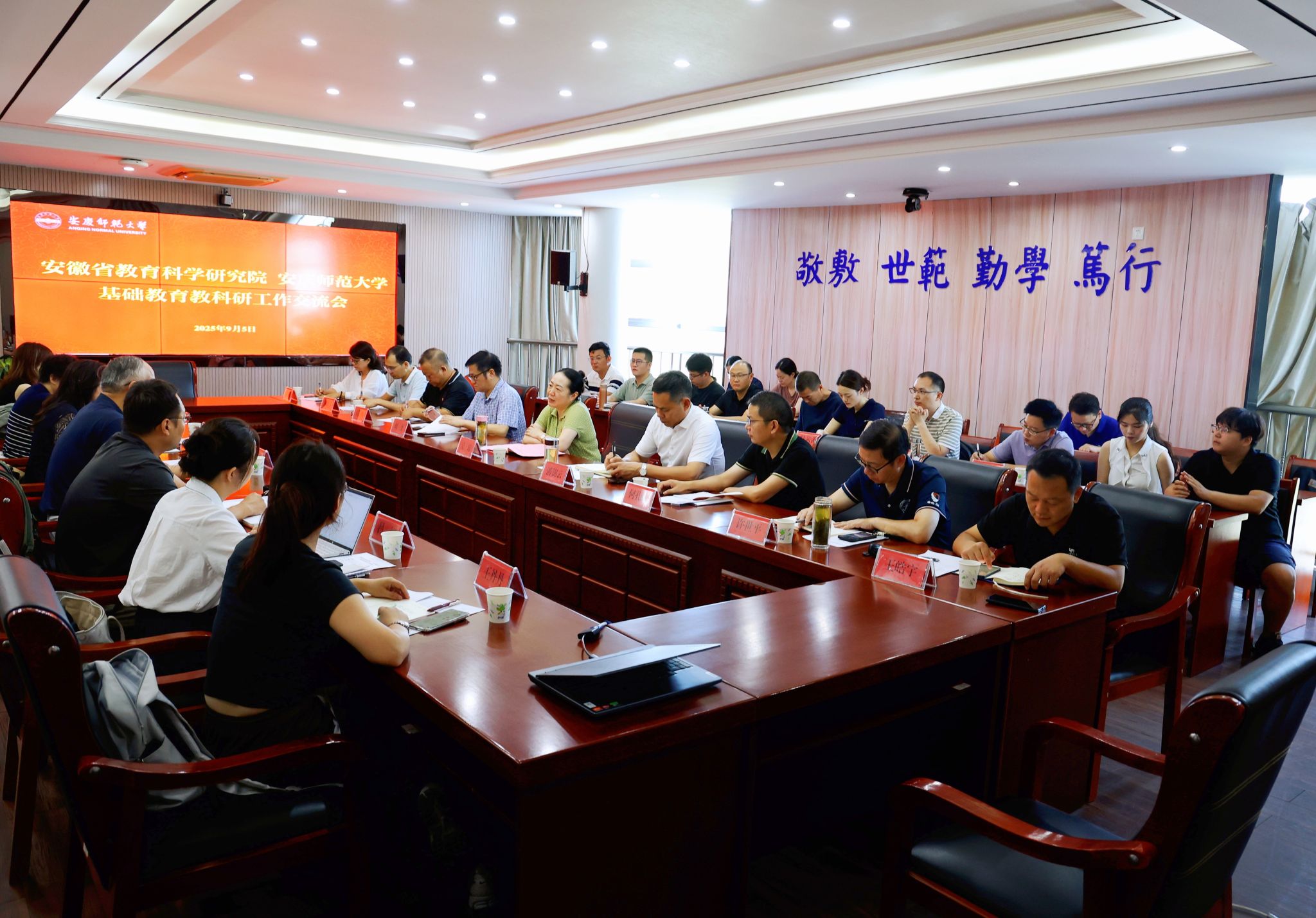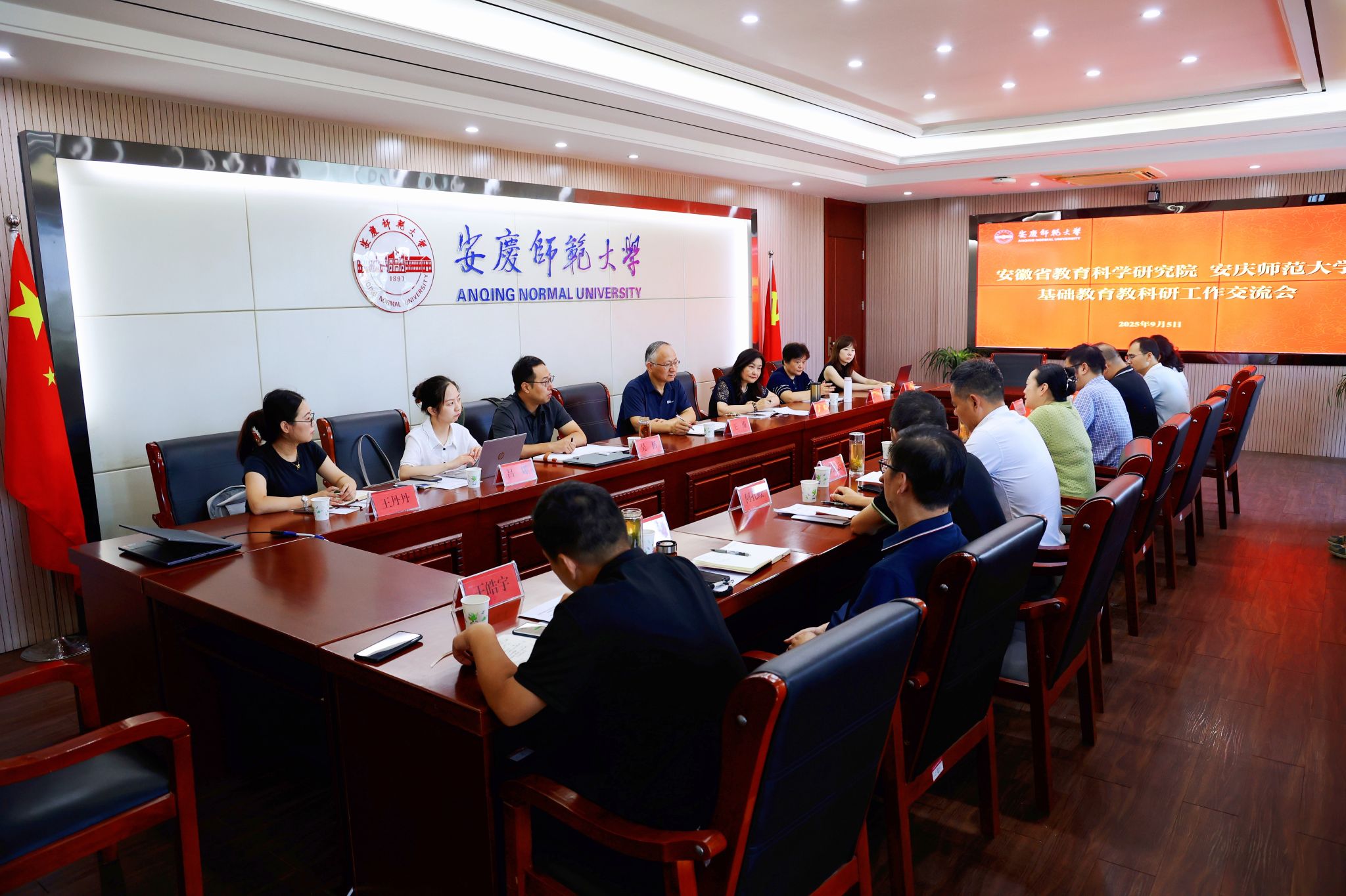 9月4日至5日,安徽省教育科学研究院院长王勇、副院长赵杰等一行来校调研交流。校长彭凤莲接见王勇一行。校党委常委、副校长吴琼出席座谈会。