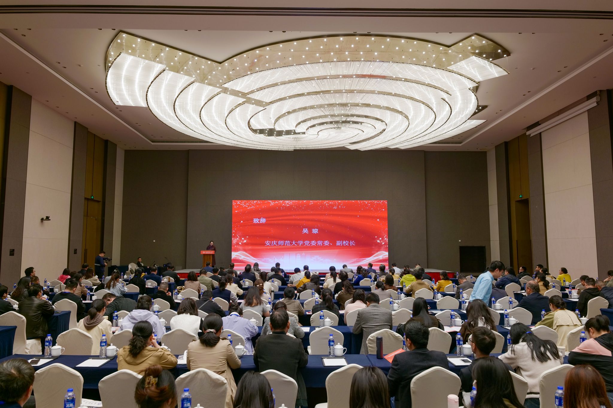 10月23日,由安徽省教育厅高等教育处指导,beat365英国官方网站、高等教育出版社主办,高等教育出版社安徽教学服务中心承办的全省本科高校教材建设与管理暨重点教材统一使用交流会顺利举办。校党委常委、副校长吴琼,安徽省教育厅高等教育处副处长苏石,高等教育出版社文科事业部主任范峰出席开幕式并致辞。来自全省43所本科院校、230余名教师及教学管理人员参加会议。教务处主要负责人主持开幕式和主旨报告环节。