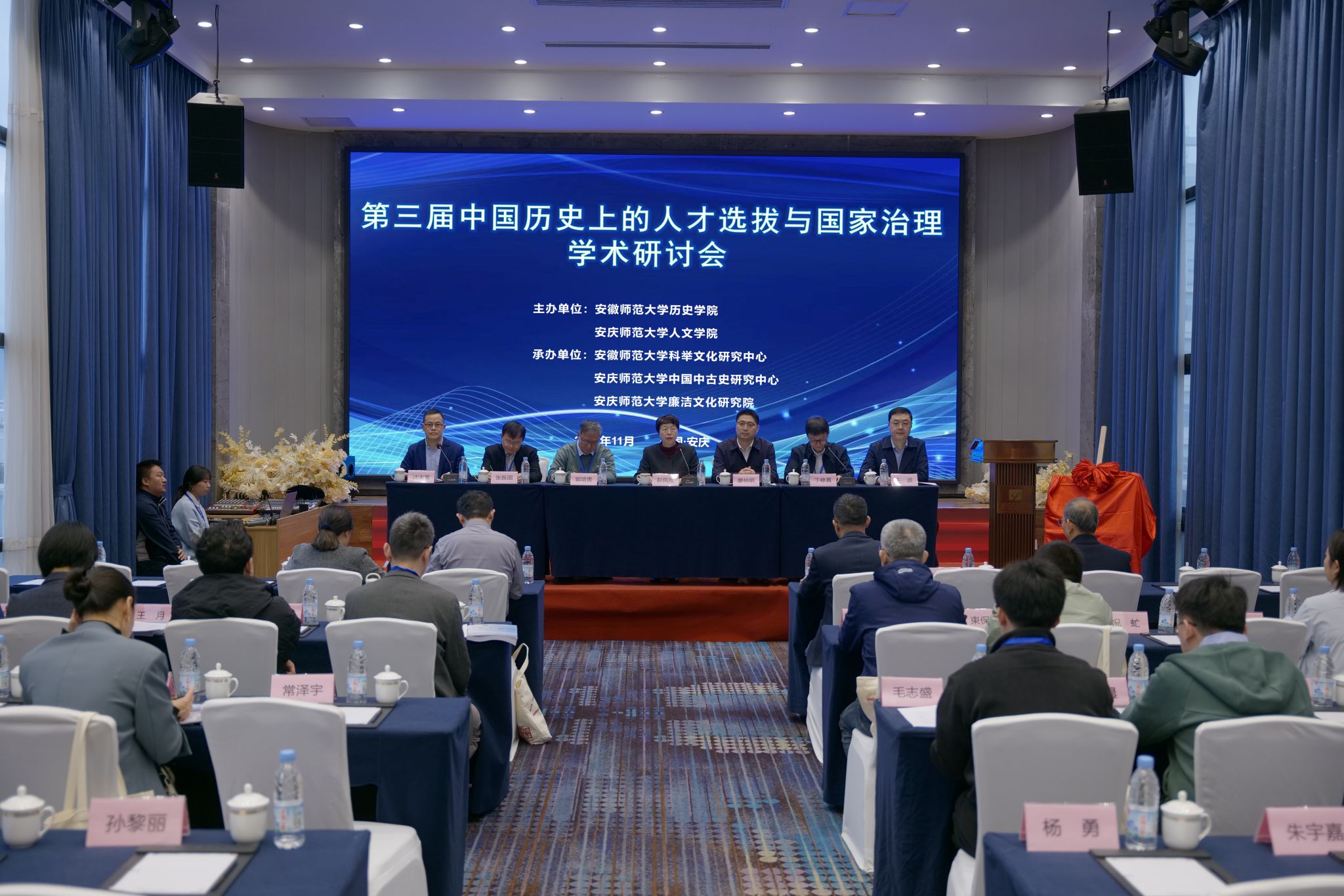 11月7日至9日,由安徽师范大学历史学院、beat365英国官方网站人文学院联合主办,安徽师范大学科举文化研究中心、beat365英国官方网站中国中古史研究中心、beat365英国官方网站廉洁文化研究院共同承办的第三届“中国历史上的人才选拔与国家治理”学术研讨会在学校召开。来自中国社会科学院(中国历史研究院)、山东大学、华东师范大学、中国政法大学、河南大学、安徽师范大学等知名高校和科研机构的专家学者以及重点学术期刊编辑等共70余人齐聚一堂,深入交流研讨中国政治制度史、人才选拔史和国家治理史等研究的新领域、新范式、新成果,为服务国家治理体系和治理能力现代化重大战略贡献力量。