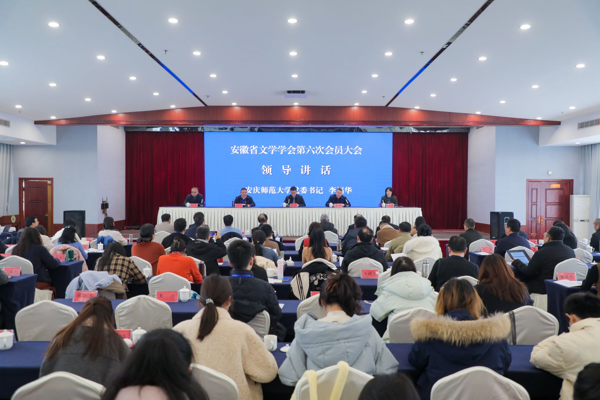 李福华在致辞中指出,此次会员大会凝聚了全省文学界的中坚力量,擘画了新时代安徽文学的发展蓝图,意义深远。他希望,学会始终把握正确方向,坚持以人民为中心的创作导向,为建设中华民族现代文明注入安徽动能;要深耕“五大文化”沃土,持续开展有组织、系统性、深层次科研,塑造一批具有安徽辨识度的文学品牌;要深化会校协同联动,打造一支具有影响力的安徽文学人才队伍。